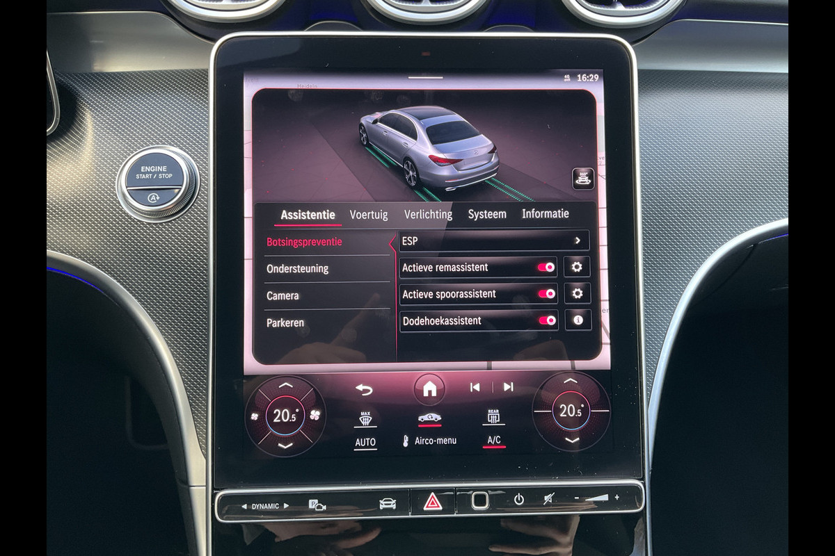 De Mercedes-Benz C-klasse is uw trouwe partner onderweg, want hij houdt continu voor u de situatie op en om de weg in de gaten. Volautomatische veiligheidssystemen kunnen daarbij ingrijpen om u voor gevaarlijke situaties te behoeden. Wat deze auto ook kan, is lezen. Hij 'leest' voor u de verkeersborden tijdens de rit en attendeert u erop door ze op het dashboard te projecteren. Het Lane-keeping systeem registreert permanent of u binnen de lijnen van de rijstrook blijft; dwaalt u onbedoeld af, dan waarschuwt het systeem en corrigeert de koers. Als een ander voertuig in uw dode hoek rijdt, waarschuwt het systeem met een signaal. Met voorzieningen als forward collision warning system, autonoom remsysteem en bandenspanningcontrolesysteem, bent u altijd veilig onderweg.