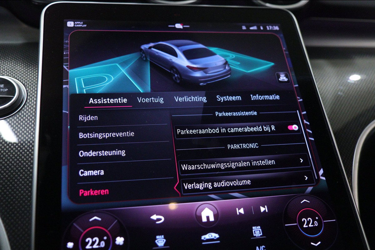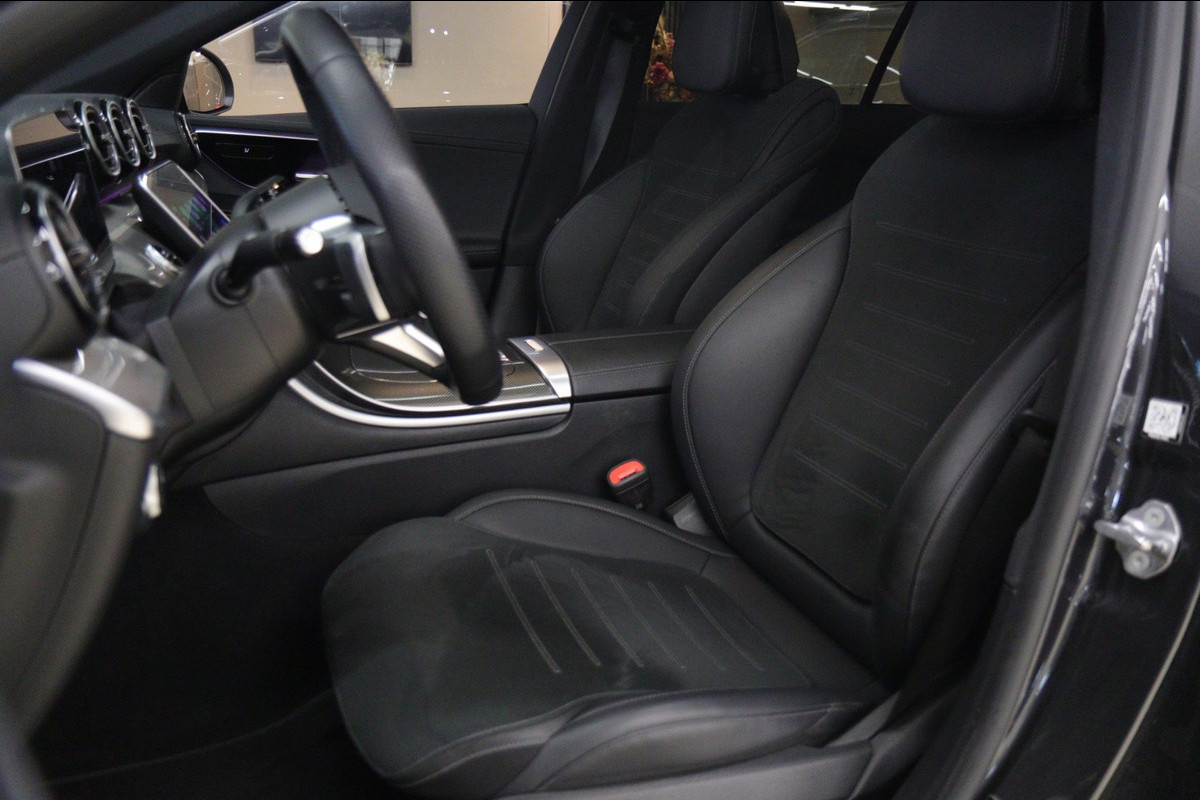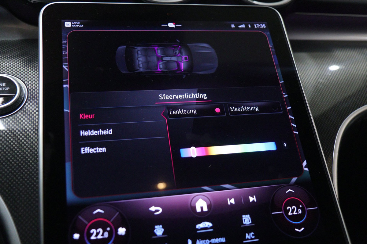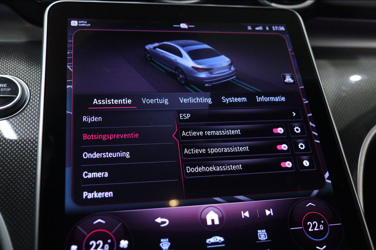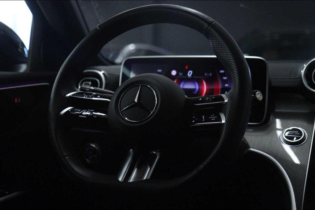 Deze uitvoering is werkelijk rijk uitgerust en voorzien van een panoramadak, Apple CarPlay, sfeerverlichting, stoelverwarming, achteruitrijcamera en navigatie. Ook op het gebied van veiligheid en rijassistentie komt u niets tekort met Adaptive Cruise Control, Lane Assist, Remassistent, Blind Spot Assist en Verkeerslicht Assistent. De digitale verlichting geeft deze C-Klasse bovendien een extra exclusieve en moderne uitstraling.