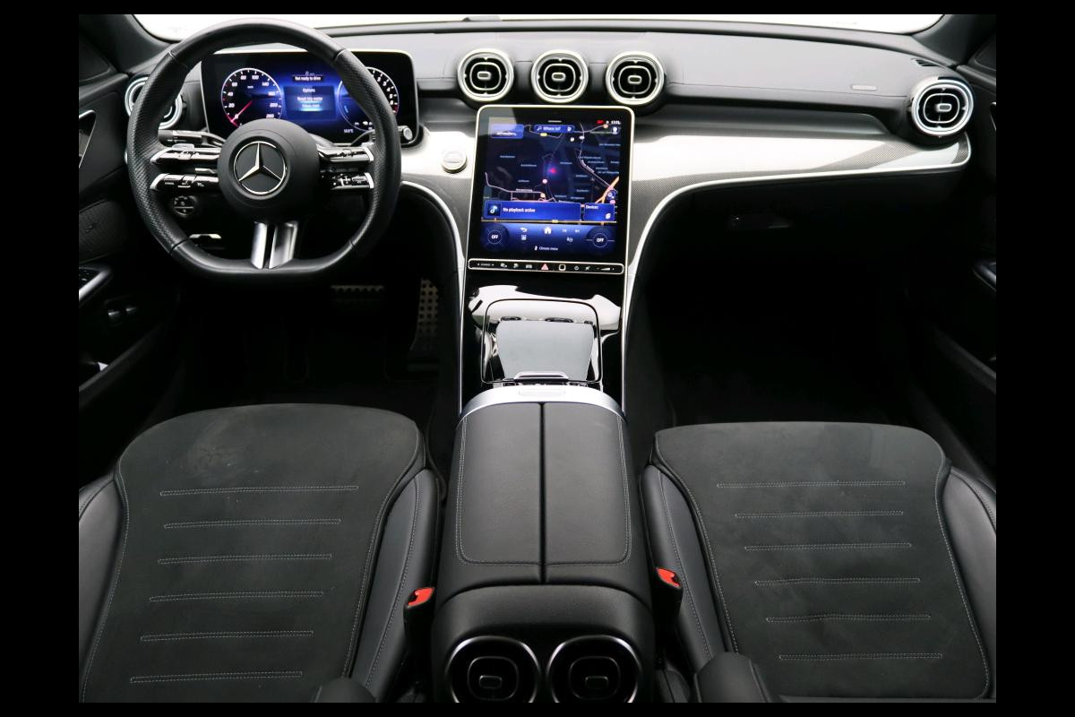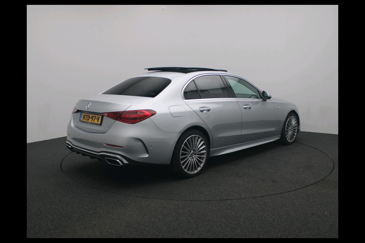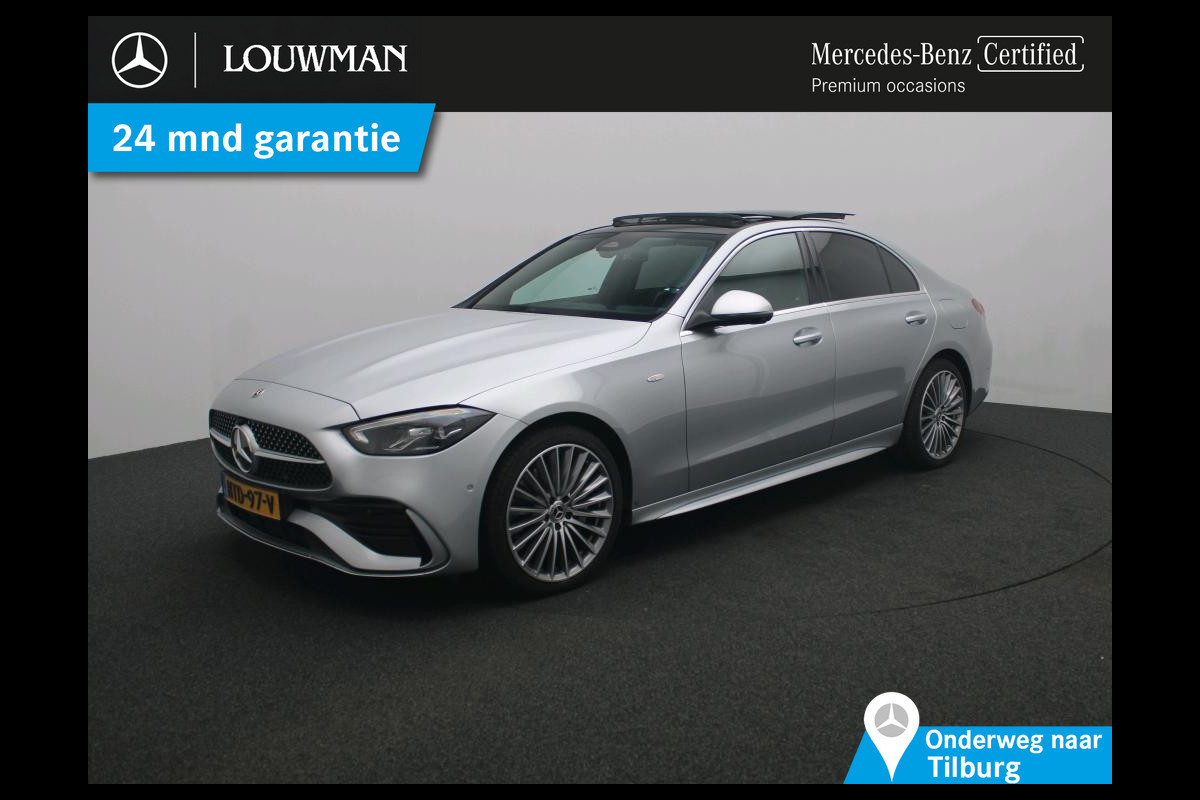 Mercedes-Benz C-Klasse 300 e Business Solution AMG AMG Line | Panorama Schuif-Kanteldak | Distronic | Lederen bekleding | Alarm | Parkeerpakket met 360°-camera | 20 Inch AMG Velgen. Inclusief 24 maanden Mercedes-Benz Certified garantie voor Europa.
