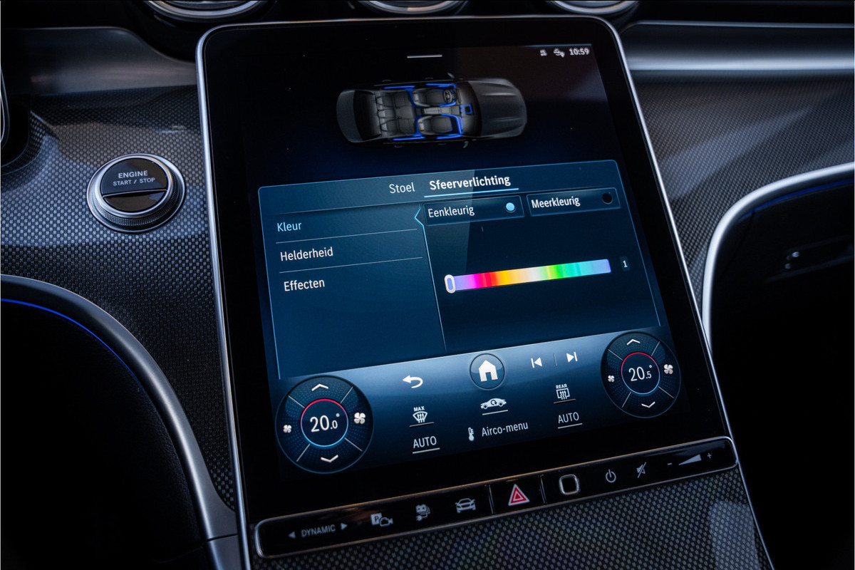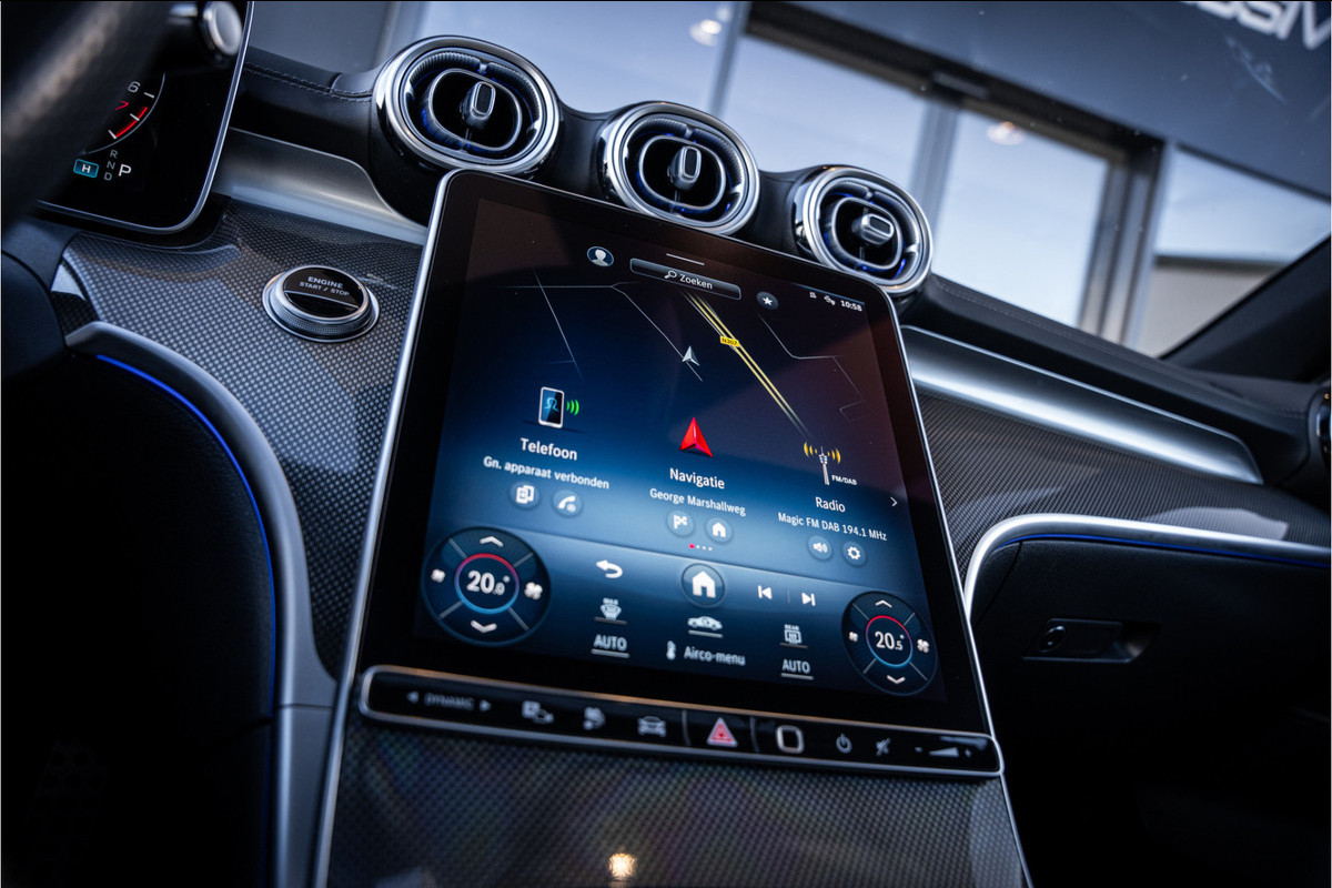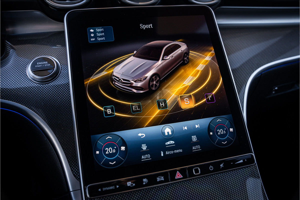 De plug-in hybride aandrijflijn maakt de C300 e bijzonder veelzijdig. Elektrisch rijden gaat met volledige rust en souplesse, terwijl de benzinemotor extra kracht toevoegt wanneer je dat wilt. Hierdoor voelt de auto lichtvoetig, vlot en efficiënt — perfect voor zowel dagelijks gebruik als langere ritten.