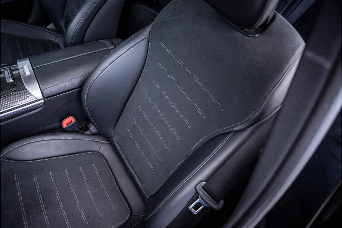 Binnenin ervaar je de luxe en high-tech omgeving die Mercedes zo onderscheidend maakt. De hoogwaardige materialen, sportieve AMG-details, sfeerverlichting en het state-of-the-art MBUX-multimediasysteem creëren een cockpit die gericht is op comfort én beleving. De ergonomische sportstoelen, het strakke design en de verfijnde afwerking zorgen voor een interieur waar je elke kilometer van geniet.