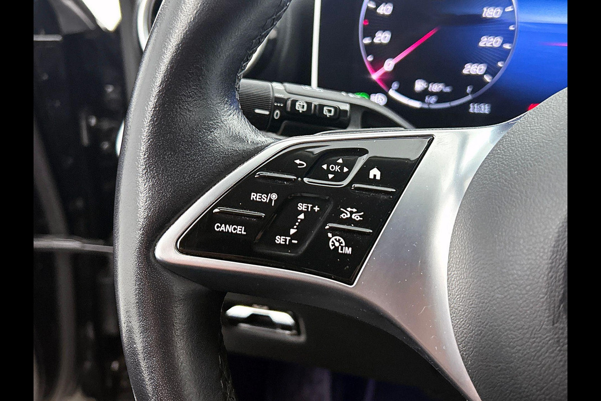 Pas de interface van uw cockpit moeiteloos aan. Het is mogelijk door het digitale dashboard in deze auto. Hoeveel ruimte heeft u nog bij het inparkeren? De achteruitrijcamera brengt helder in beeld wat zich achter de auto bevindt en geeft een geluidssignaal. Met adaptive cruise control houdt de auto zelfstandig afstand tot uw voorligger. Een veiligheidsverhogende optie waarmee u comfortabel onderweg bent. Spraaksturing is onderdeel van de uitrusting van deze auto. Met uw stem kunt u de belangrijkste voertuigfuncties bedienen. De auto is voorzien van een trekhaak en is een uitstekende caravantrekker. De Mercedes-Benz is standaard voorzien van: connected drive services, navigatiesysteem met harde schijf, automatische airconditioning, draadloos opladen, DAB ontvangst en regensensor.