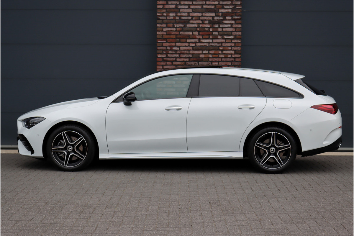 Mercedes-Benz CLA-Klasse Shooting Brake 250 e AMG Line Aut8 | Facelift | Panoramadak | Distronic+ | Memory | Verwarmd Stuuwiel | Leder | HUD | Sfeerverlichting | Augmented Reality | Surround Camera | Keyless Go |