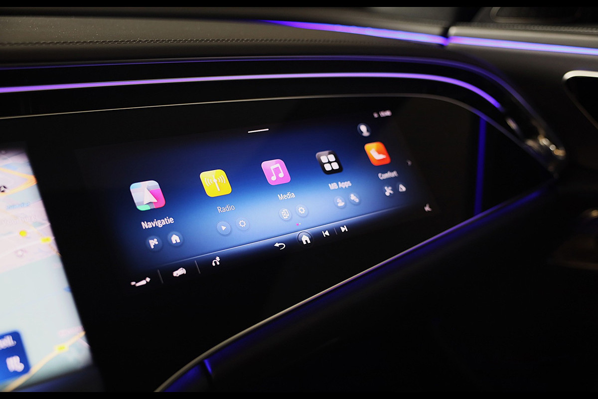 Ervaar de wonderen van de digitale mobiliteitswereld waarbij alles wat u wenst op het digitale dashboard verschijnt. De vier camera's genereren samen een 360 graden beeld rond de auto, zodat u een volledig overzicht hebt van wat er rondom uw auto gebeurt. Adaptive cruise control houdt de ingestelde snelheid vast en houdt afstand tot het voertuig voor u. Een aanhanger of caravan kan ook mee, dankzij de elektrisch inklapbare trekhaak Had u de auto nou wel afgesloten? Met Connected Services checkt u het overal en altijd. Met dashboard met spraakbediening, Burmester high-end sound system, navigatiesysteem, automatische airconditioning, draadloos opladen en DAB ontvangst is deze Mercedes-Benz helemaal compleet.