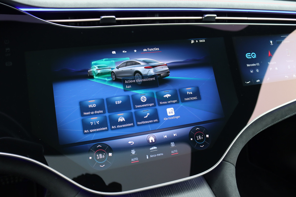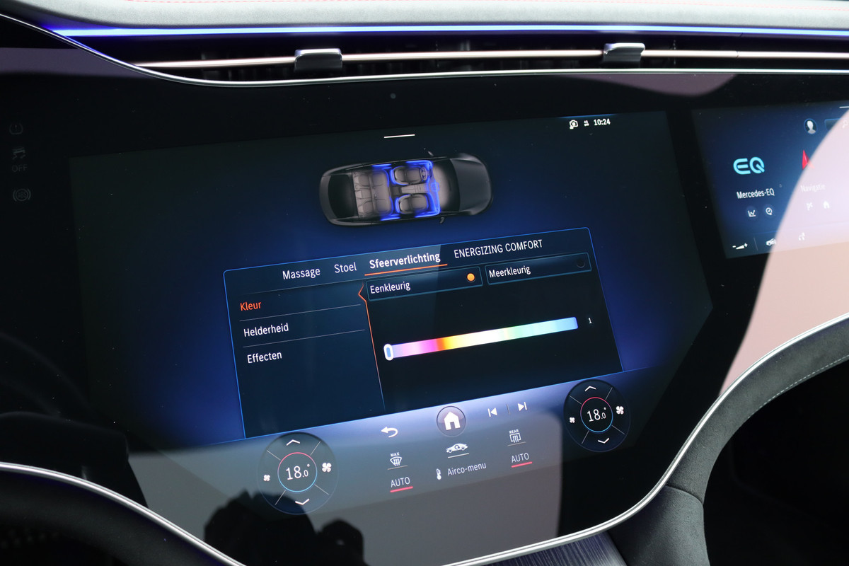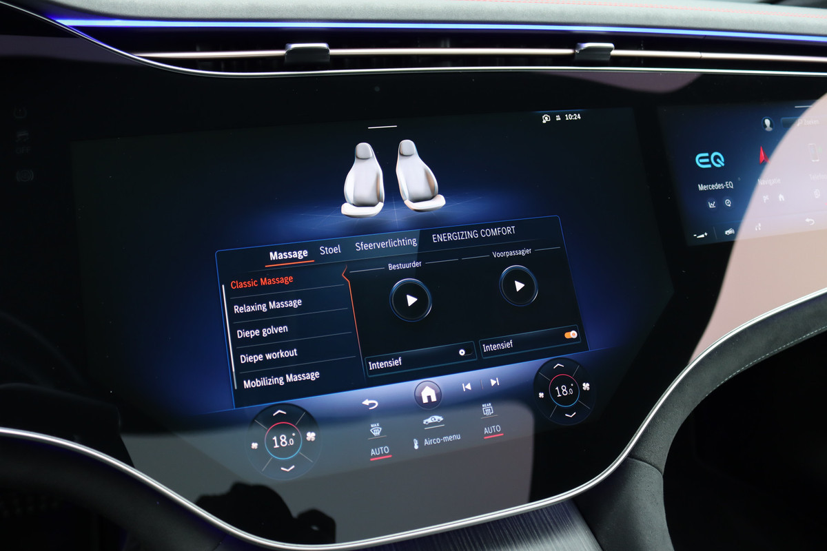Mercedes-Benz EQS 500 4MATIC AMG Line 108 kWh | Luchtvering | Achterasbesturing | Distronic+ | Memory | Nekverwarming | Massage | Entertainment Achter+ | Verwarmd Stuurwiel | HUD | Burmester | Panoramadak | Digital Light |