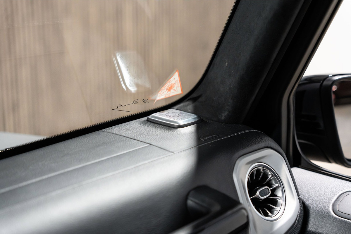 In de Mercedes-Benz G-klasse heeft uw veiligheid en die van uw omgeving prioriteit. U rijdt ook veiliger omdat deze auto voor u de verkeersborden langs de weg kan lezen. De belangrijkste borden worden op uw instrumentarium geprojecteerd, zodat u ze niet kunt missen. Het Lane-keeping systeem garandeert dat u zich niet onverhoeds buiten de lijnen van de rijstrook begeeft. Onbedoeld bumperkleven is er niet bij, dankzij de forward collision warning. Die waarschuwt direct als een botsrisico met uw voorligger dreigt. Verder is deze auto uitgerust met dodehoekdetectie, accident avoidance system, hill hold functie, vermoeidheidsherkenning en frontale botsbescherming.