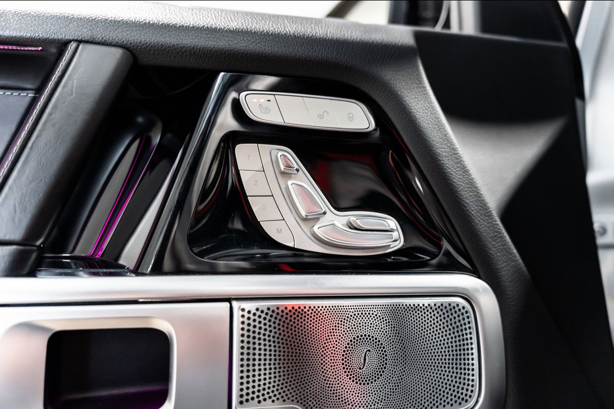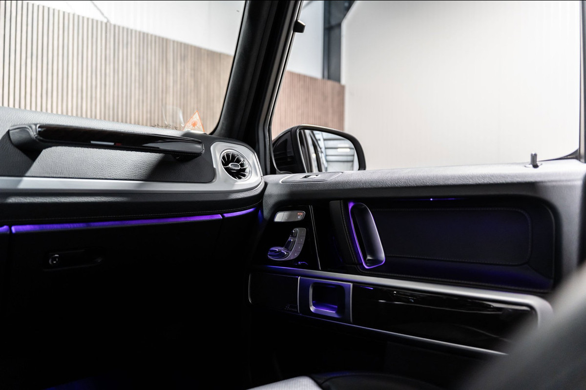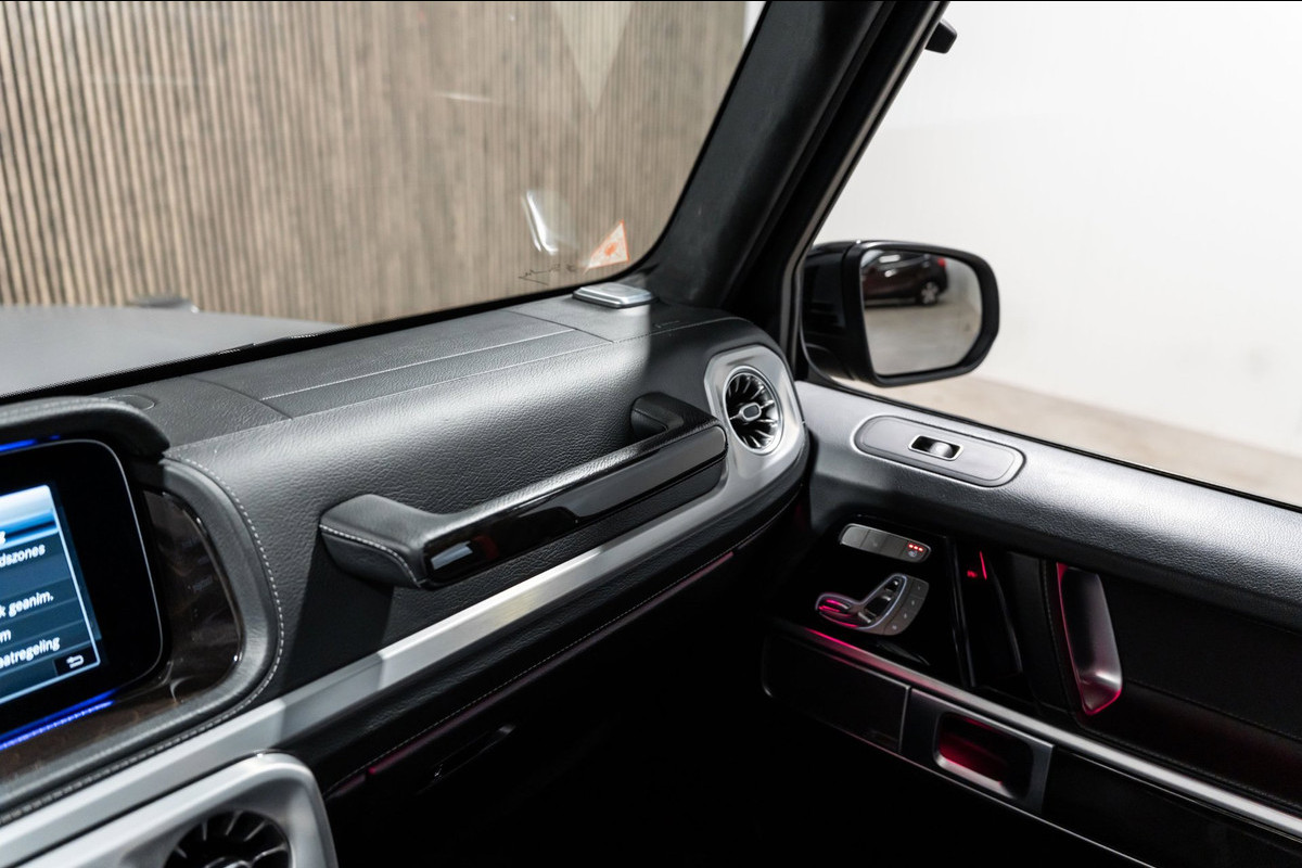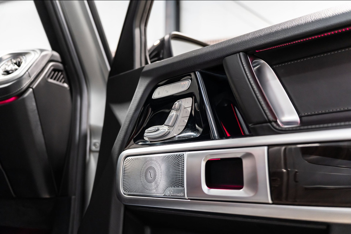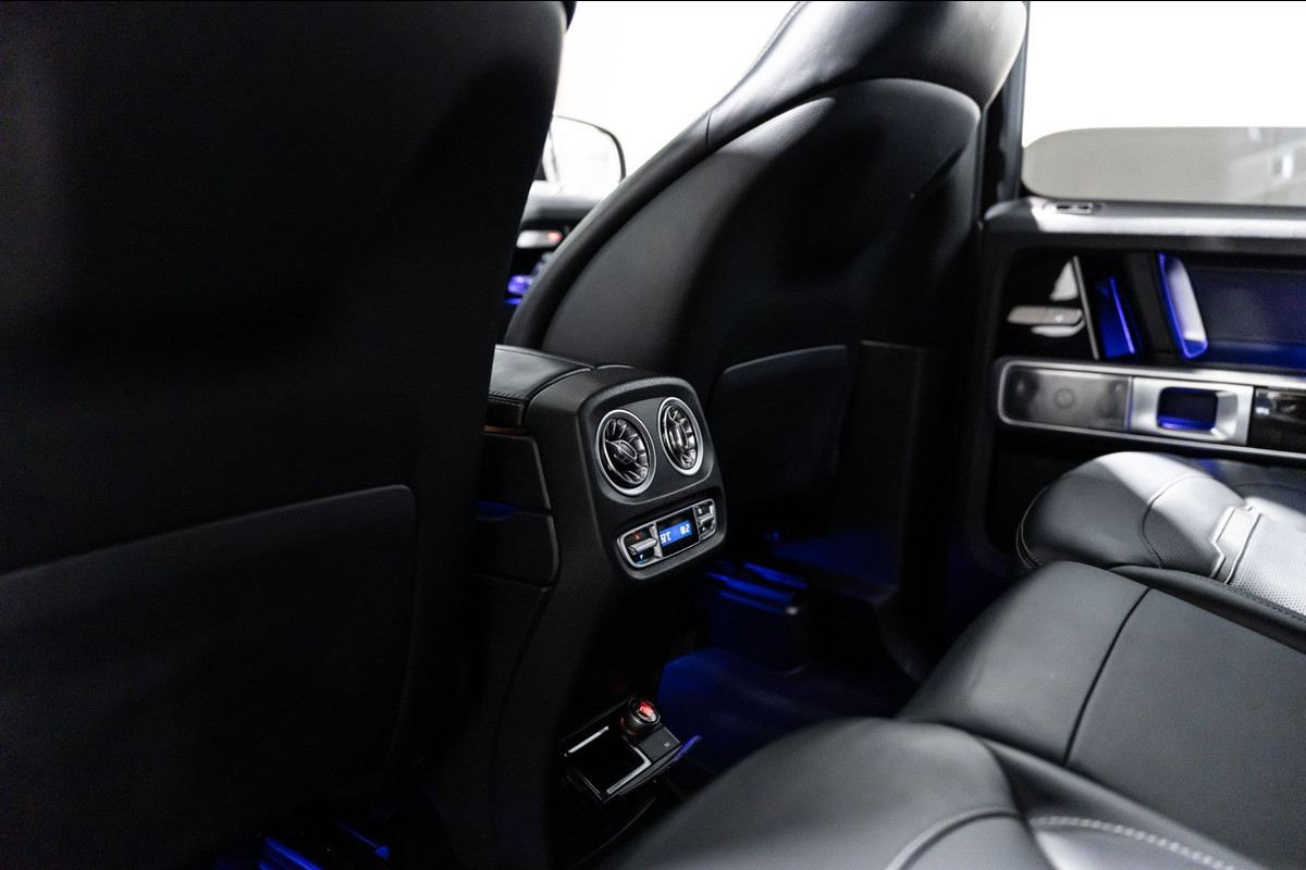 U rijdt gemakkelijk, comfortabel en zonder zorgen met deze Mercedes-Benz G-klasse. Bent u bestand tegen een beetje bekijks? Dan zal de AMG-styling u zeker aanspreken. De krachtige motor geeft deze Mercedes-Benz uitstekende prestaties. Misschien bent u niet veeleisend, maar na dit elektrisch bediende glazen panorama dak en het lederen interieur wilt u nooit anders meer. Neem plaats op de comfortabele stoelen. Dankzij de elektrische bediening en het geheugen is het eenvoudig om hierin de beste zitpositie te vinden. Op gure dagen is het ook achterin heerlijk bijkomen op de verwarmde achterbank. De uitmonstering van deze auto wordt gecompleteerd door onder meer 22 inch lichtmetalen velgen, LED koplampen, AMG-styling, warmtewerend glas, in delen neerklapbare achterbank en treeplanken.