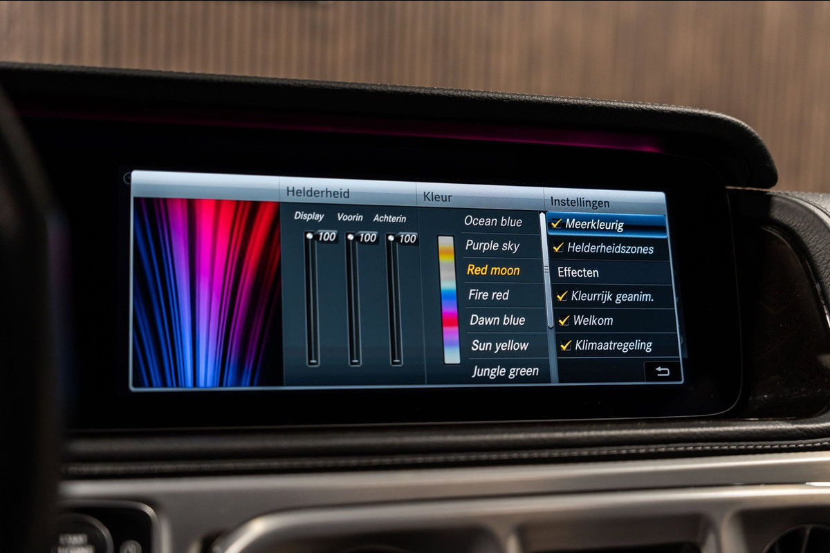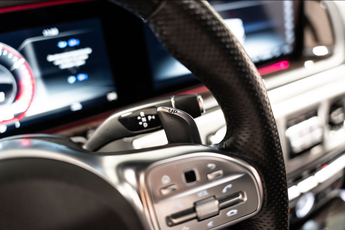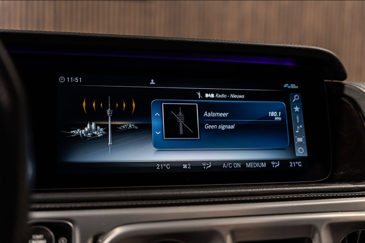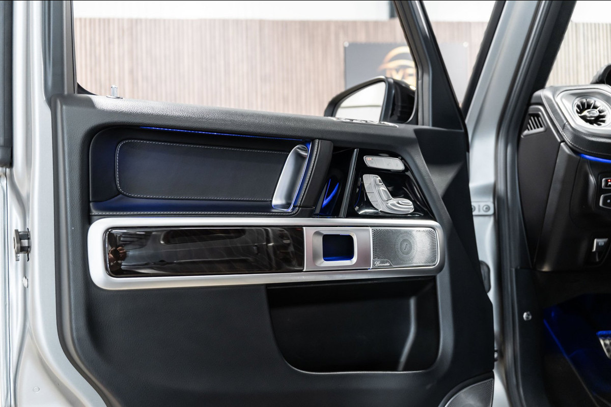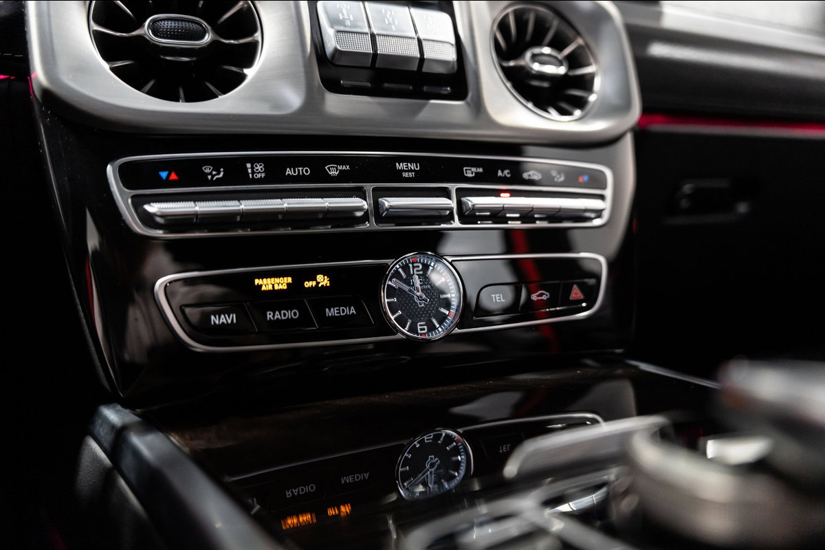 U rijdt gemakkelijk, comfortabel en zonder zorgen met deze Mercedes-Benz G-klasse. Bent u bestand tegen een beetje bekijks? Dan zal de AMG-styling u zeker aanspreken. De krachtige motor geeft deze Mercedes-Benz uitstekende prestaties. Misschien bent u niet veeleisend, maar na dit elektrisch bediende glazen panorama dak en het lederen interieur wilt u nooit anders meer. Neem plaats op de comfortabele stoelen. Dankzij de elektrische bediening en het geheugen is het eenvoudig om hierin de beste zitpositie te vinden. Op gure dagen is het ook achterin heerlijk bijkomen op de verwarmde achterbank. De uitmonstering van deze auto wordt gecompleteerd door onder meer 22 inch lichtmetalen velgen, LED koplampen, AMG-styling, warmtewerend glas, in delen neerklapbare achterbank en treeplanken.