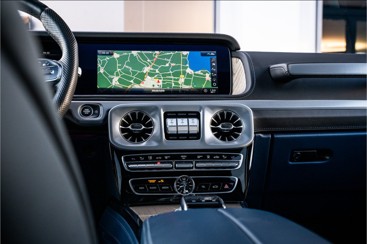 Dankzij de 360 graden camera op de auto, wordt manoeuvreren in smalle straatjes ineens veel eenvoudiger. Met adaptive cruise control houdt deze auto automatisch afstand tot uw voorligger. Deze Mercedes-Benz G-klasse is voorzien van remote services. Via uw smartphone bedient u diverse functies ook op afstand en krijgt u informatie over de status van uw auto. Voor wie hoge eisen stelt aan geluid en akoestiek, is deze auto voorzien van een high performance audiosysteem. De kans op een kop-staart botsing wordt sterk gereduceerd door het systeem van achteropkomend verkeer waarschuwing. En dan is deze auto ook nog eens voorzien van dashboard met spraakbediening, navigatiesysteem met harde schijf, automatische airconditioning, sportstuur met schakelpaddels, regensensor en automatisch dimmende buitenspiegels.
