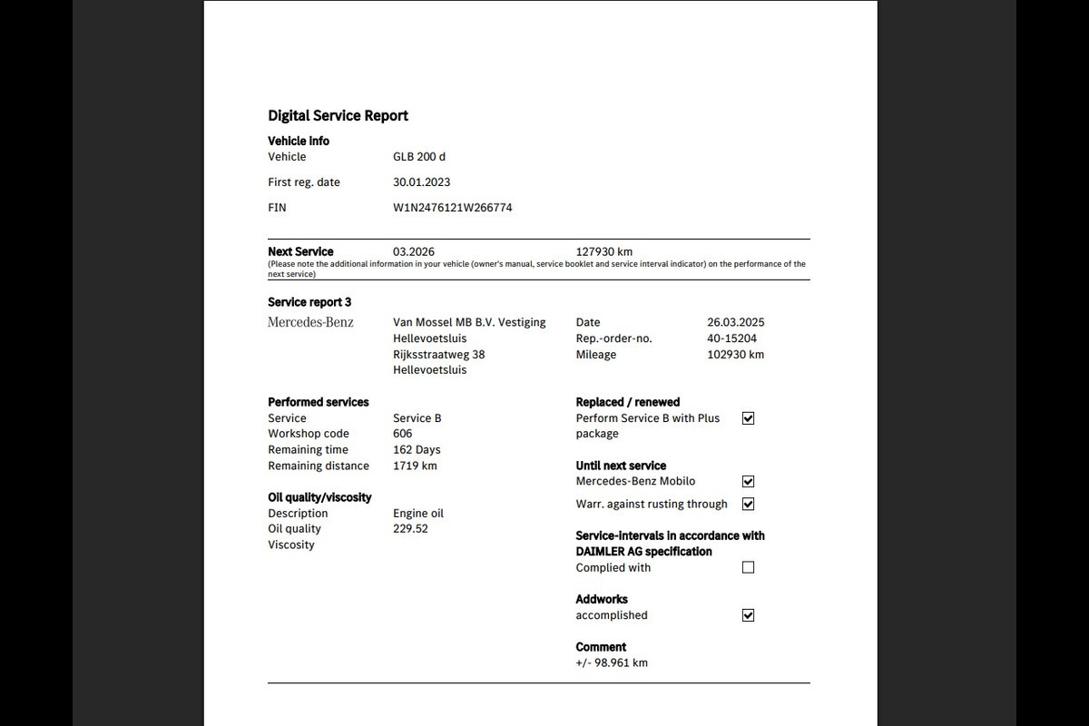 ✔ Laatste servicebeurt bij 127.930 km