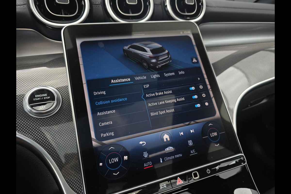 Aan boord van deze Mercedes houden verschillende geavanceerde systemen voor u de weg in de gaten. Ze waarschuwen u voor noodsituaties en kunnen in een aantal gevallen ook zelf ingrijpen. De camera van de verkeersborddetectie herkent verschillende soorten verkeersborden en toont deze op het dashboard. Met het Lane-keeping systeem gaat u nooit onbedoeld over de streep. Voor meer veiligheid detecteert deze auto het risico van een aanrijding tijdig via de forward collision warning. In deze Mercedes vinden we verder een dodehoekdetectie, hill hold functie, vermoeidheidsherkenning, autonoom remsysteem en bandenspanningcontrolesysteem.
