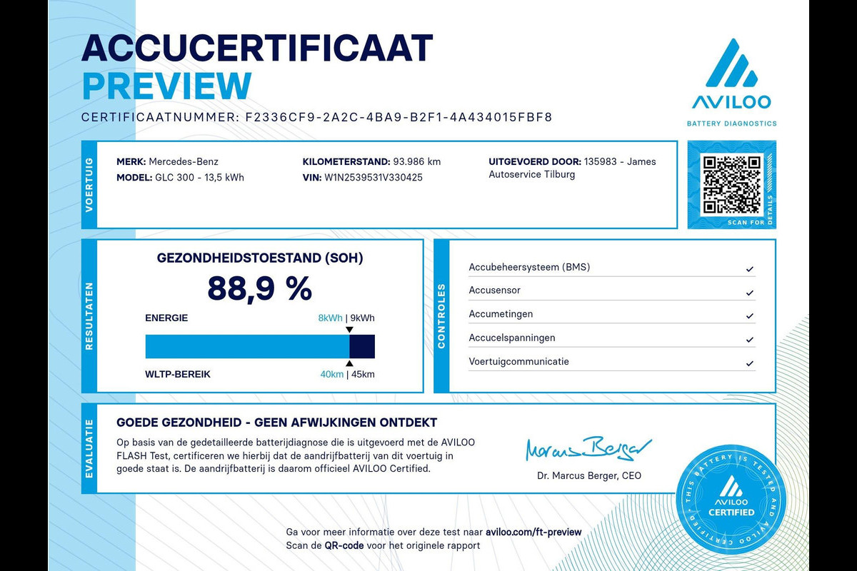Accu: 14 kWh, Conditie: 89%