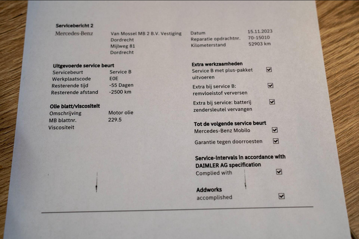 Onderhoudsbeurt bij aflevering
