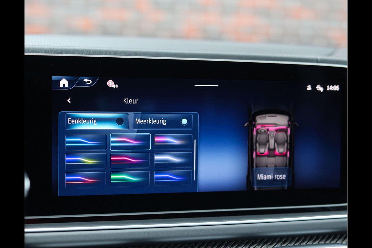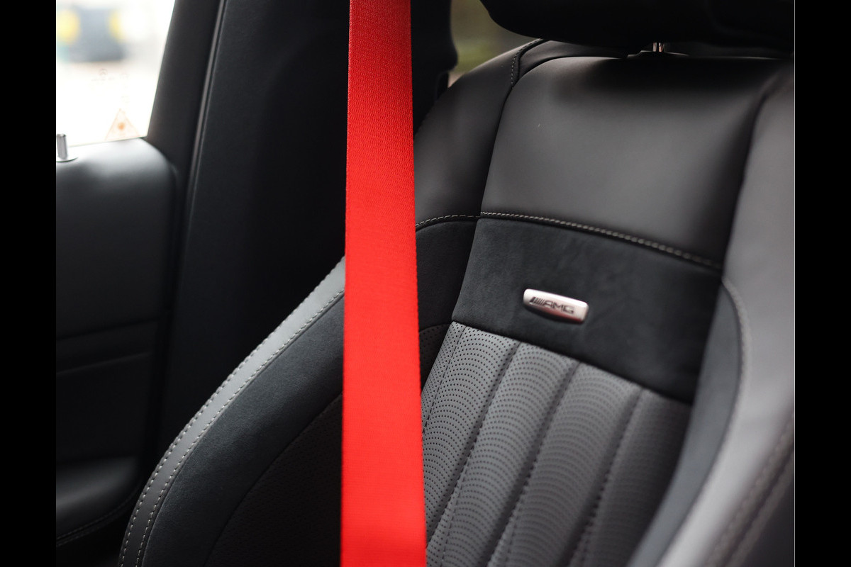 Het exterieur is uitgevoerd in Grafietgrijs, een kleur die prachtig contrasteerd met de hoogglans zwarte accenten van het AMG Night pakket. De 22” zwarte AMG velgen met daarachter rode remklauwen versterken zijn sportieve uitstraling.