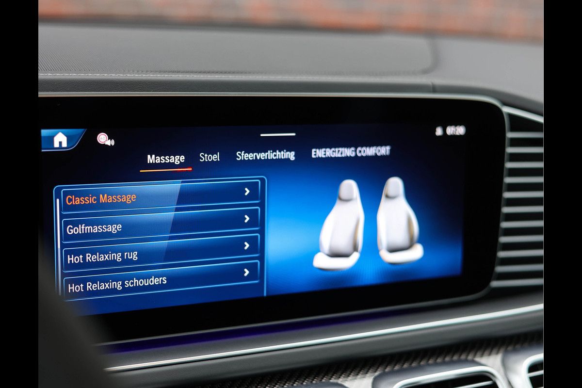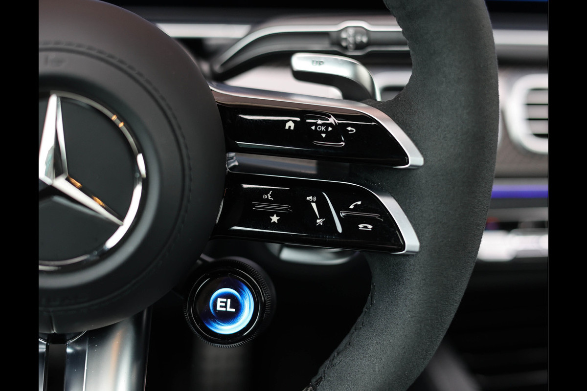Het interieur weerspiegelt dezelfde aandacht voor detail en klasse. Hier vindt u carbon interieurlijsten, een met alcantara en carbon afgewerkt AMG-stuurwiel, en een hemelbekleding in zwart alcantara. De voorstoelen zijn niet alleen verwarmbaar en geventileerd, maar ook voorzien van een uitgebreid massageprogramma – perfect afgestemd op lange ritten en stille momenten onderweg.