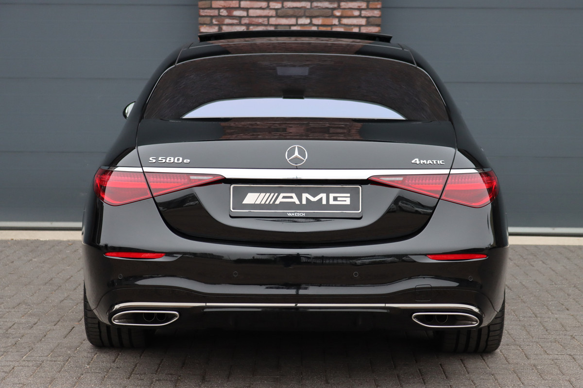 Mercedes-Benz S-Klasse 580 e 4MATIC Lang AMG Line | Airmatic | Achterasbesturing | Distronic+ | Chauffeurspakket | Zonweringpakket | Massage | Stoelventilatie | MBUX Tablet | Vlakkenverwarming | Soft-Close |