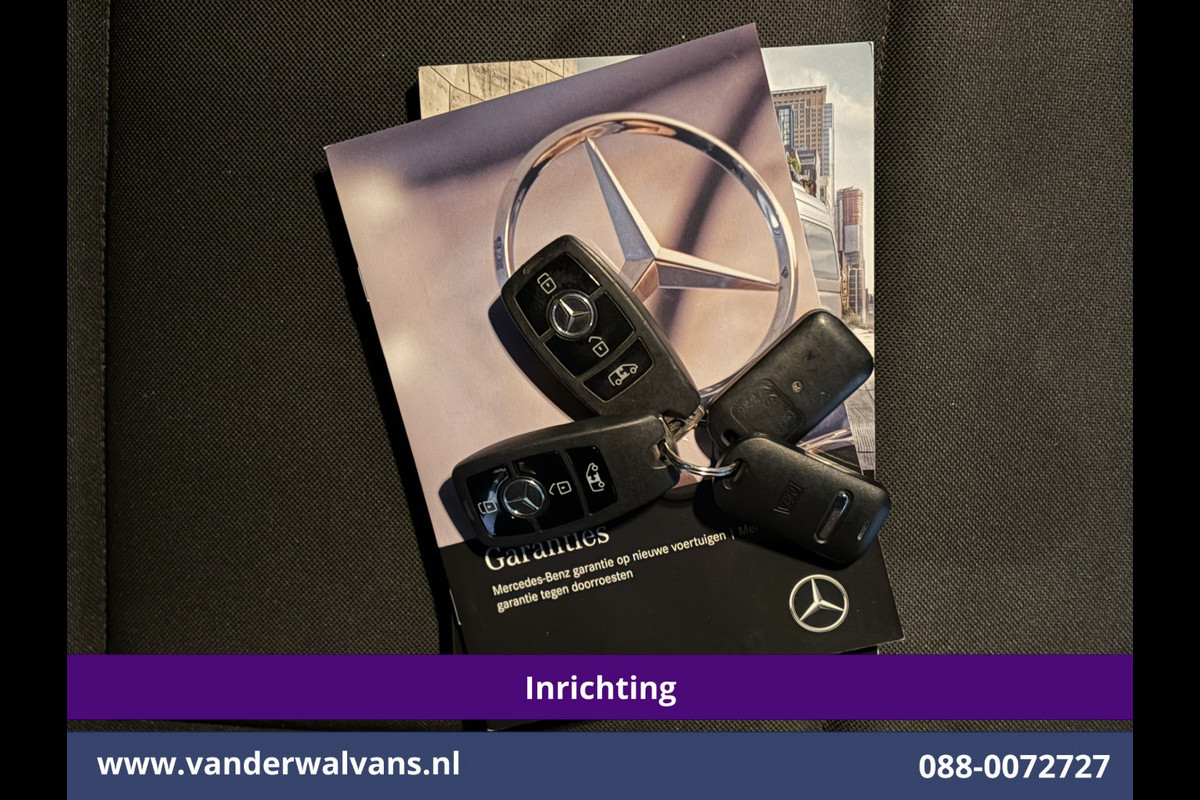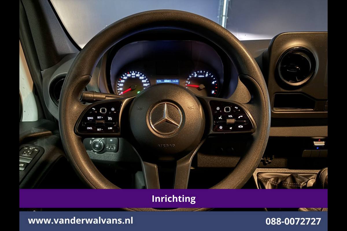 164pk sterke Sprinter L2H2 Euro6 met airconditioning, inrichting en 3500kg trekhaak. Dealer onderhouden en voorzien van omvormer, camera, Apple Carplay, Android Auto, cruisecontrol, parkeersensoren en bluetooth telefoonvoorbereiding.