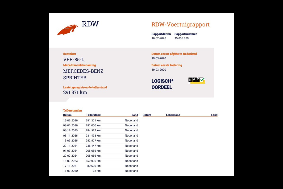 Dat de kilometerstand van deze auto klopt, blijkt uit het tellerrapport van Nationale Autopas. Bent u nieuwsgierig naar deze Mercedes-Benz Sprinter? Laat het ons dan snel weten.