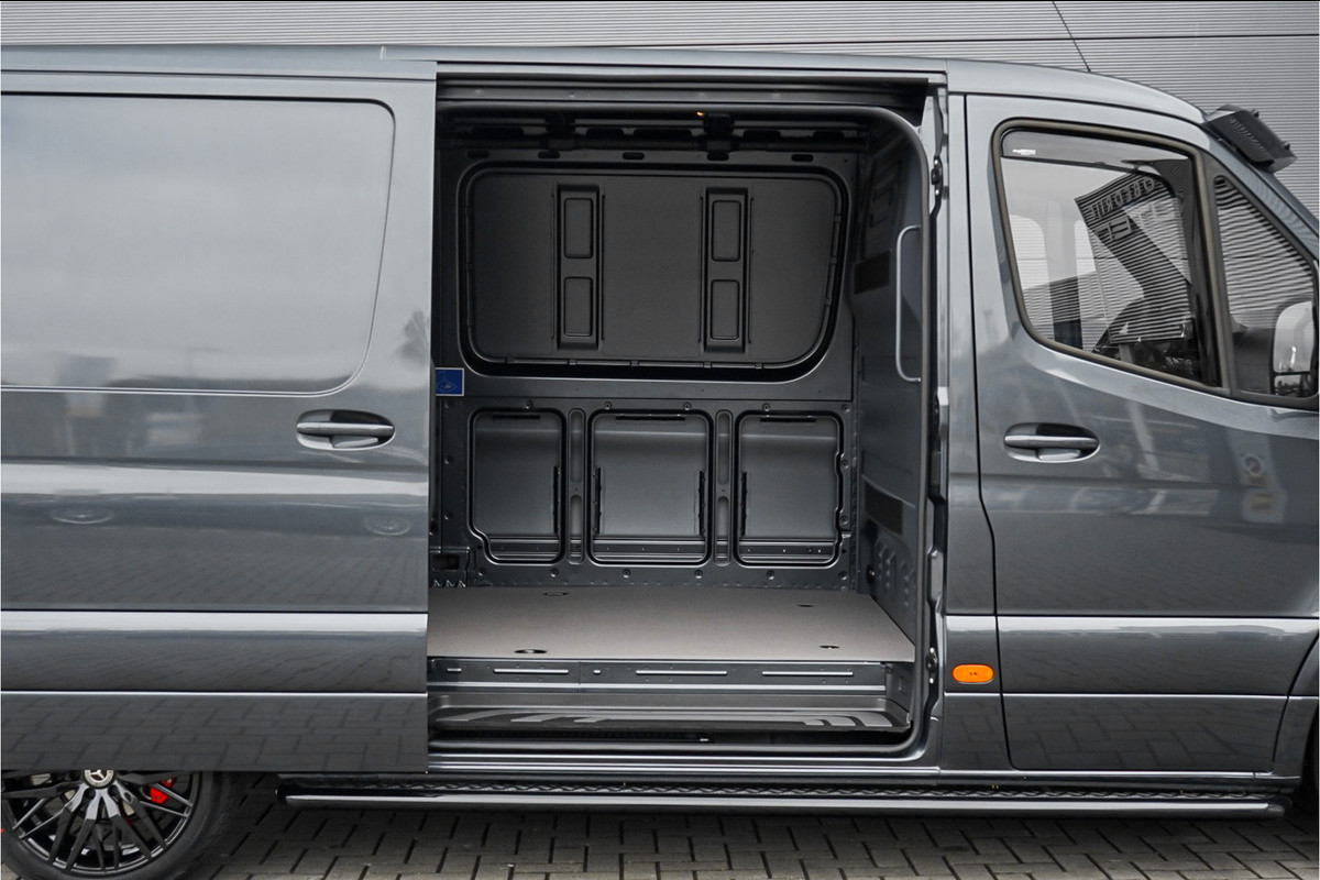 Autobedrijf Schouten biedt u deze gloednieuwe Mercedes-Benz Sprinter 319 1.9 CDI L2H2 RWD Facelift aan, met de juiste opties. De prijs is zoals afgebeeld, met lichtmetalen velgen, trekhaak 3.500 KG, en vloerplaat. Het exterieur van de Sprinter is uitgevoerd in de kleur: 'Grafitgrau', gecombineerd met een zwart interieur. Verder beschikt de Mercedes-Benz Sprinter over een mooie lijst met fabrieksopties, waaronder: