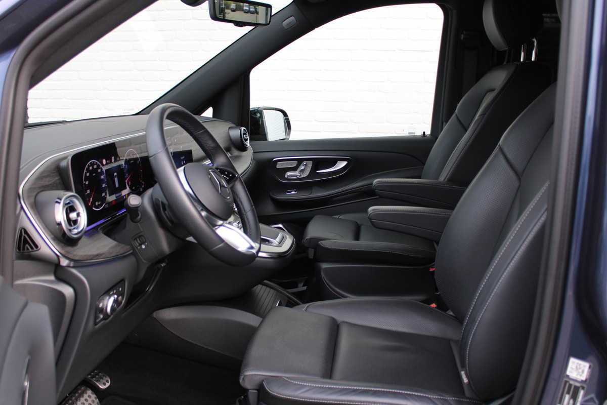 Met zijn ruimte en zijn prestaties is dit de auto die bij u past. Deze Mercedes-Benz V-klasse heeft 10946 kilometer gelopen. AMG-styling vertegenwoordigt de overtreffende trap in smaakvolle sportiviteit. Een krachtige motor geeft deze auto zijn sportieve prestaties. Kijk, dat noemen we nou stijlvol: een fraai lederen interieur. Gecombineerd met het heerlijke gemak van de elektrisch bedienbare achterklep. U past de stoelen moeiteloos aan, ze zijn elektrisch in te stellen en hebben bovendien een geheugen. Constante rijhoogte, optimaal comfort, perfecte wegligging... de luchtvering zorgt ervoor! De comfortstoelen doen er nog een schepje bovenop. Comfortabel houvast krijgt u van het verwarmd stuurwiel. Het passagiersgedeelte van deze personenauto is voorzien van een schuifdeur. Dat betekent een royale instap zonder openslaande portieren! Tot de uitrusting behoren ook 19 inch lichtmetalen velgen, AMG-styling, sportonderstel, LED-koplampen, adaptief dempingsysteem en warmtewerend glas.