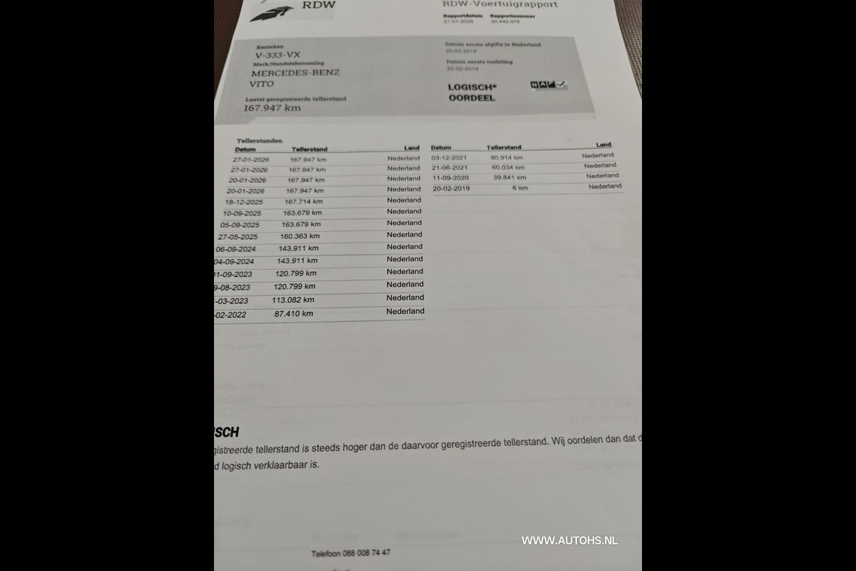 Rdw teller rapport en onderhoud boekje aanwezig.