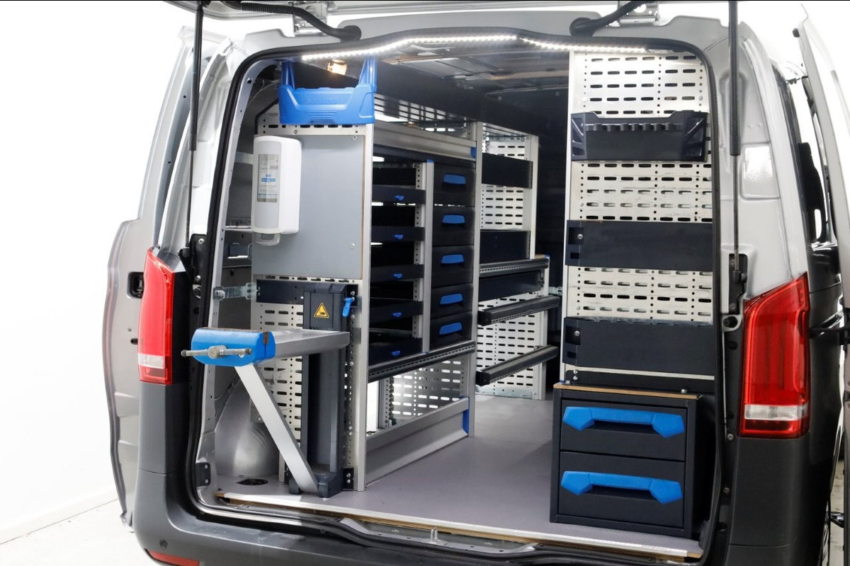 Deze 136pk sterke Vito 114 CDI is van 05-2022 en heeft slechts 119.000km gereden! Compacte en wendbare L1H1, direct inzetbaar vanwege reeds gemonteerde inrichting.