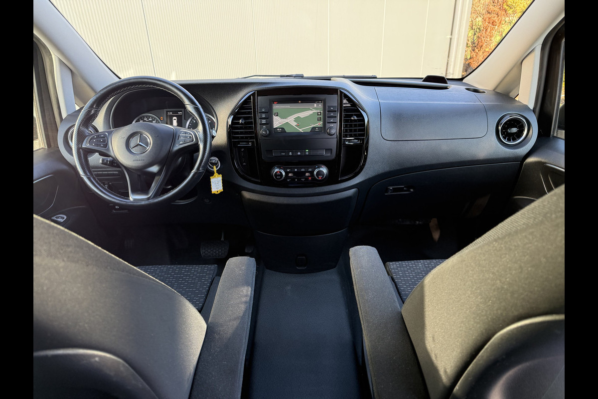 Mercedes-Benz Vito 114 CDI 136 PK automaat dubbele cabine afkomstig van de 1e eigenaar. L2H1 uitvoering met o.a. Climate control, Cruise control, Navigatiesysteem, DAB+ Radio, Apple Carplay / Android Auto, Achteruitrij camera, LED, ISOFIX, Sidebars, 19 inch lichtmetalen velgen, Achterklep en Trekhaak met 2500 kg trekgewicht. Te koop bij Ruinemans bedrijfswagens Eesveen (Steenwijk)
