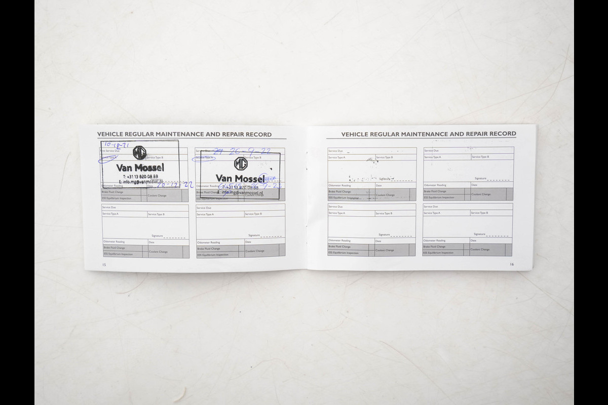 Onderhoudsboekjes: Aanwezig