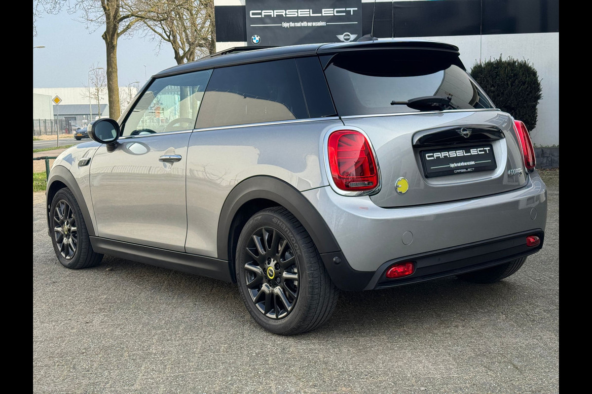 Zeer complete en sportieve MINI Cooper SE in Melting Silver metallic met zwart dak en zwarte spiegelkappen. Afkomstig van de eerste eigenaar, met slechts 23.309 km gereden. Volledig elektrisch met 135 kW (184 pk), automatische transmissie en voorwielaandrijving. APK tot februari 2027.