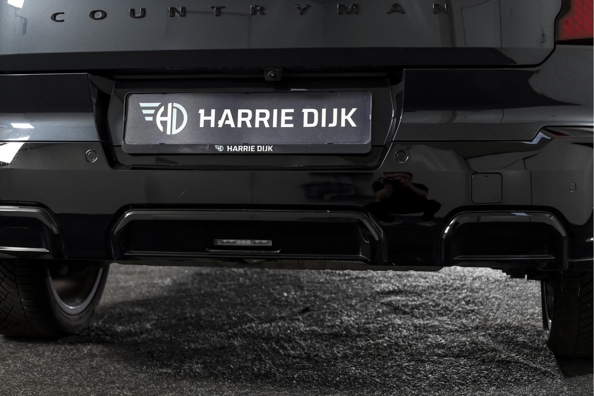 Van buiten valt de auto op door de lichtmetalen velgen 5-spaaks 20" en het grote elektrisch glazen panorama-dak, dat zorgt voor extra licht en ruimtebeleving. Praktisch in het gebruik zijn de elektrisch bedienbare achterklep met sensorsturing en de trekhaak elektrisch uitklapbaar, waardoor deze Countryman ook geschikt is voor veelzijdig gebruik.