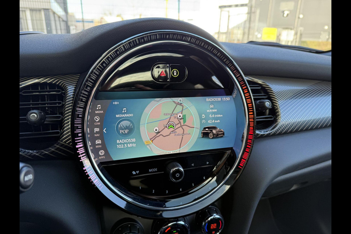 Slim, efficiënt, veilig en goed geïnformeerd rijden? Het digitale dashboard vertelt u alles wat u wilt weten. De achteruitrijcamera brengt precies in zicht wat zich achter u bevindt en toont een glashelder beeld op hoge resolutie. Een geluidssignaal waarschuwt hoeveel ruimte u nog heeft. Via uw smartphone en Connected Services checkt u eenvoudig de belangrijke functies van de auto, overal en altijd. Met het full map navigatiesysteem kiest u de snelste route naar uw eindbestemming. Voor WIFI hoeft u niet meer de weg af. Deze auto heeft een eigen WIFI-hotspot aan boord. U bent in deze Mini ook voorzien van WIFI-hotspot, automatische airconditioning, DAB ontvangst, regensensor, cruise control en sportstuurwiel.