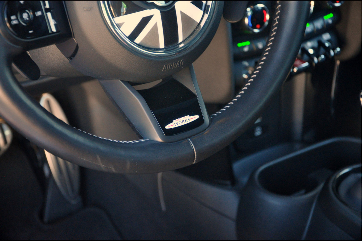 In het interieur wordt deze lijn doorgetrokken. De auto is voorzien van het JCW-sportinterieur, Harman Kardon-audiosysteem, panoramadak, navigatie, Apple Carplay, achteruitrijcamera, stuurwielverwarming, adaptieve cc, head up-display en nog veel meer.
