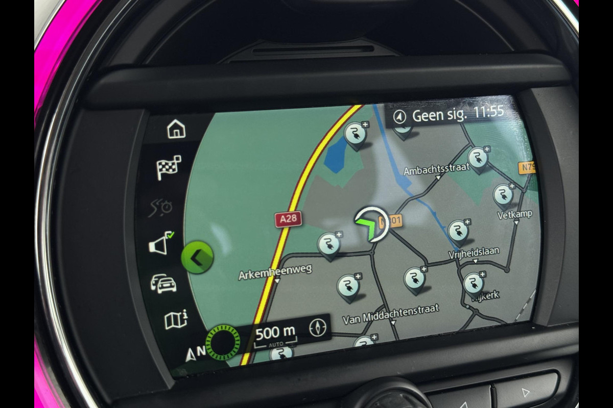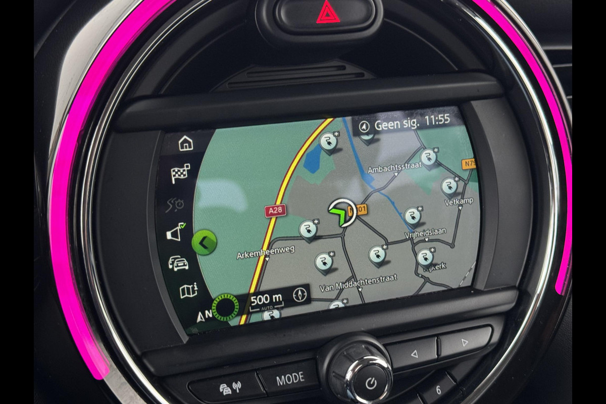Altijd de benodigde functies in beeld? Het digitale dashboard zorgt ervoor. De conditie van deze auto is 24/7 inzichtelijk dankzij Connected Services. U bedient het full map navigatiesysteem en het audiosysteem via knoppen op het stuur. Zo kunt u steeds uw aandacht gericht houden op de weg. Onbedoeld snijden na het inhalen gebeurt niet meer, dankzij de achteropkomend verkeer waarschuwing. Dankzij automatische airconditioning is het interieur behaaglijk warm of verfrissend koel. De uitrusting van deze Mini is met regensensor, cruise control, sportstuurwiel, centrale deurvergrendeling met afstandsbediening en boordcomputer behoorlijk compleet.