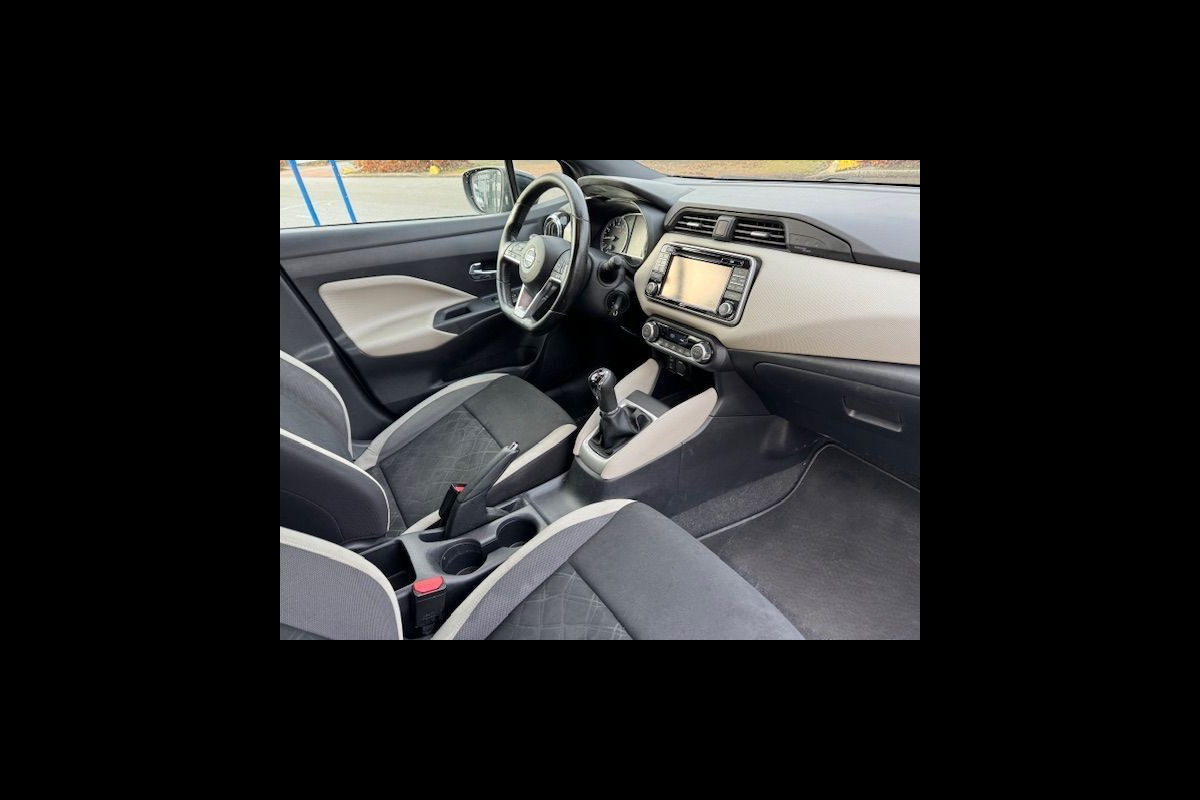 Nette en complete Nissan Micra 0.9 IG-T 5deurs N-Connecta bj. 04-2018 met oa. Airco/ECC,Cruisecontrol,Navigatie Fullmap,Camera,Elektrisch bedienbare ramen,Sportstoelen,Spiegels elektrisch inklapbaar,Donker getint glas,Achterspoiler,Lm-velgen etc. etc.