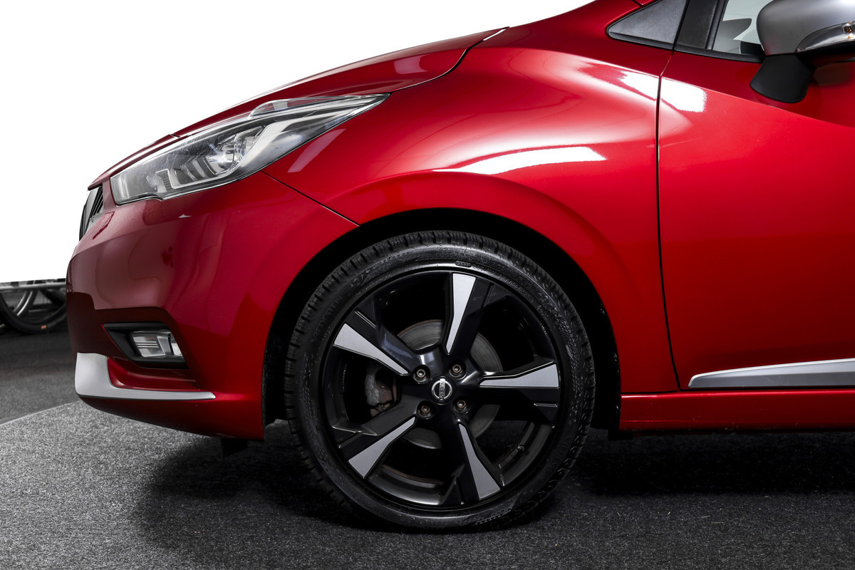 Deze Micra beschikt over zowel het Style Pack als het Tech Pack. Het Style Pack voegt onder meer extra getint glas achter, LED koplampen en mistlampen voor toe, wat de auto niet alleen een strakkere uitstraling geeft maar ook de zichtbaarheid verbetert. Het Tech Pack brengt onder andere de audio installatie premium, het navigatiesysteem en de achteruitrijcamera samen in één compleet pakket.