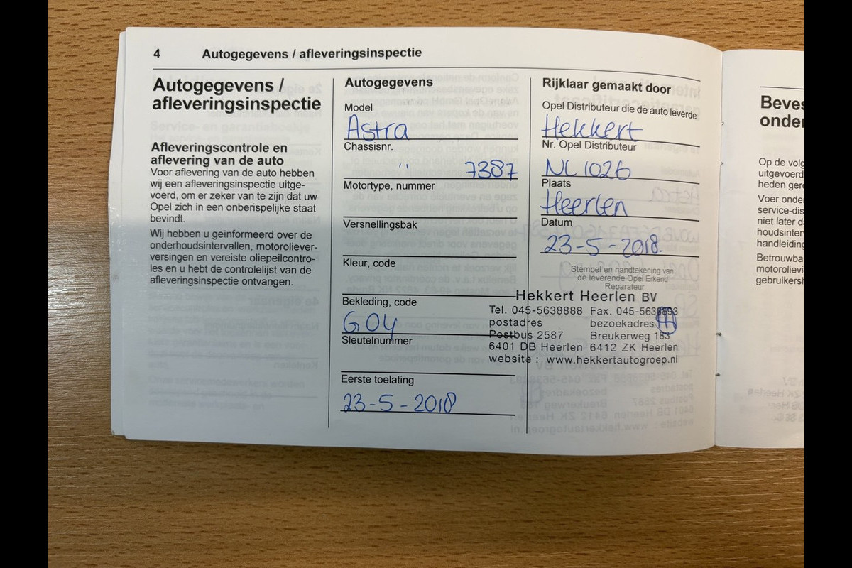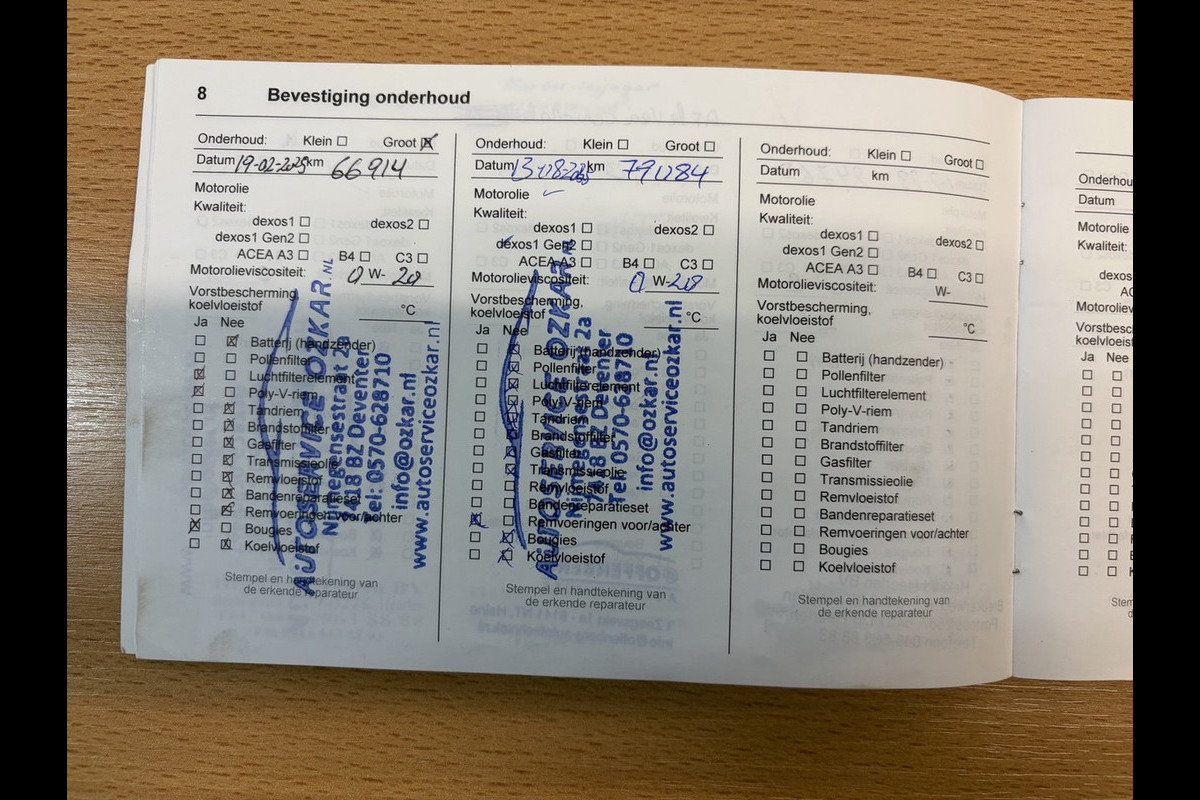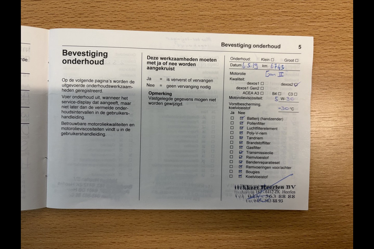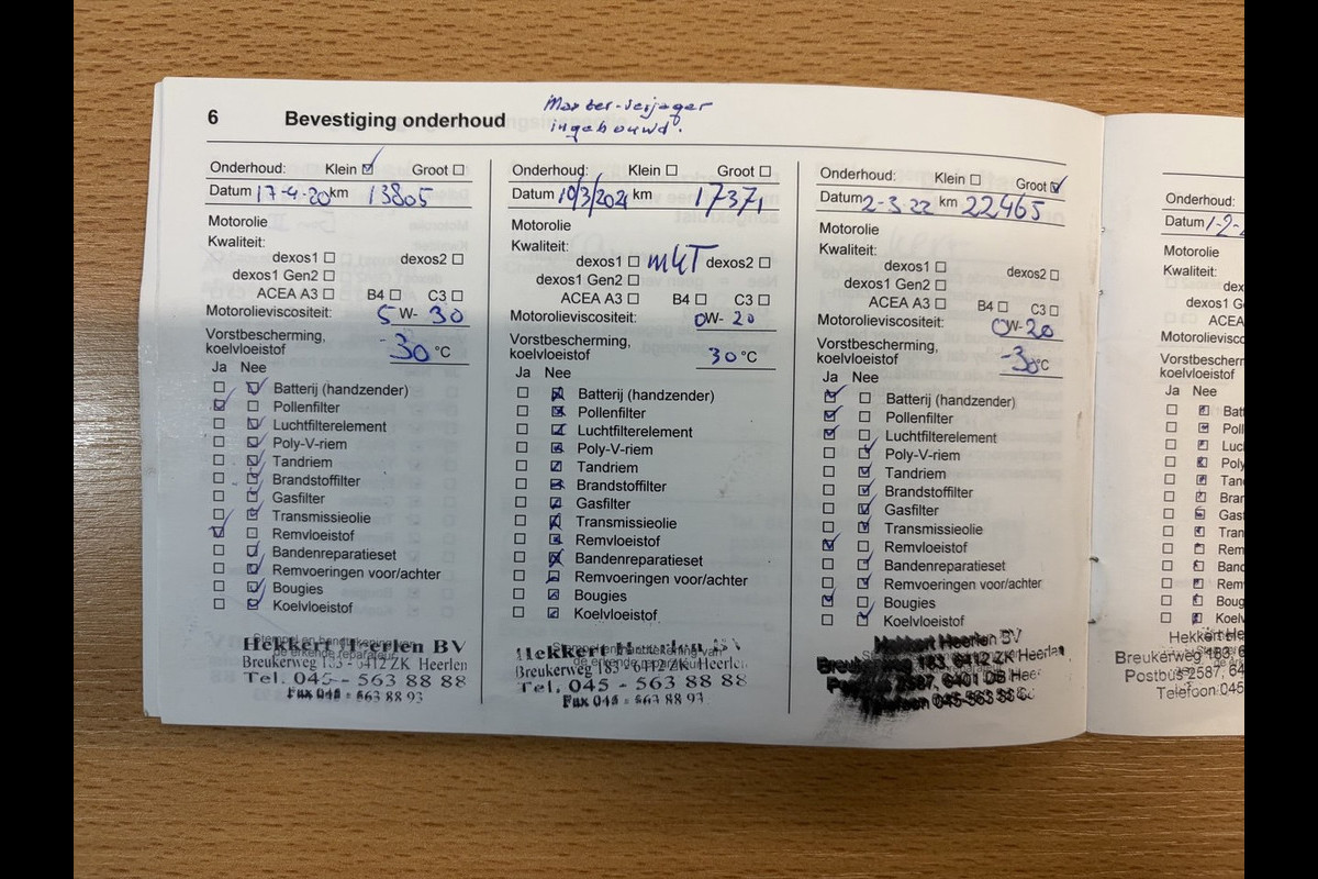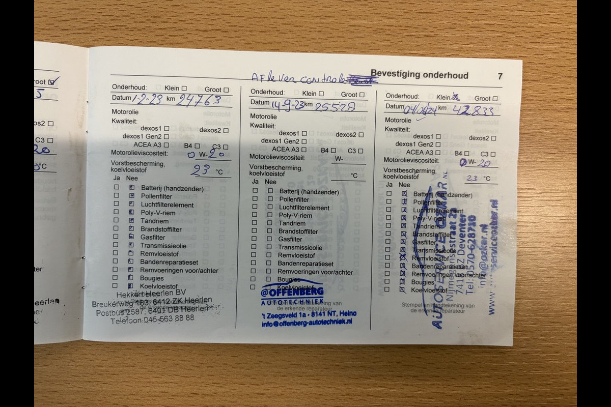 Onderhoudsboekjes: Aanwezig