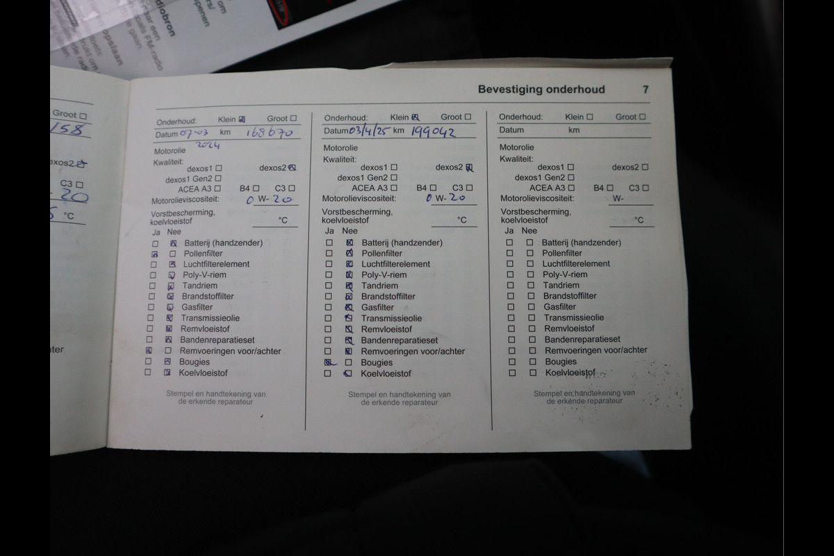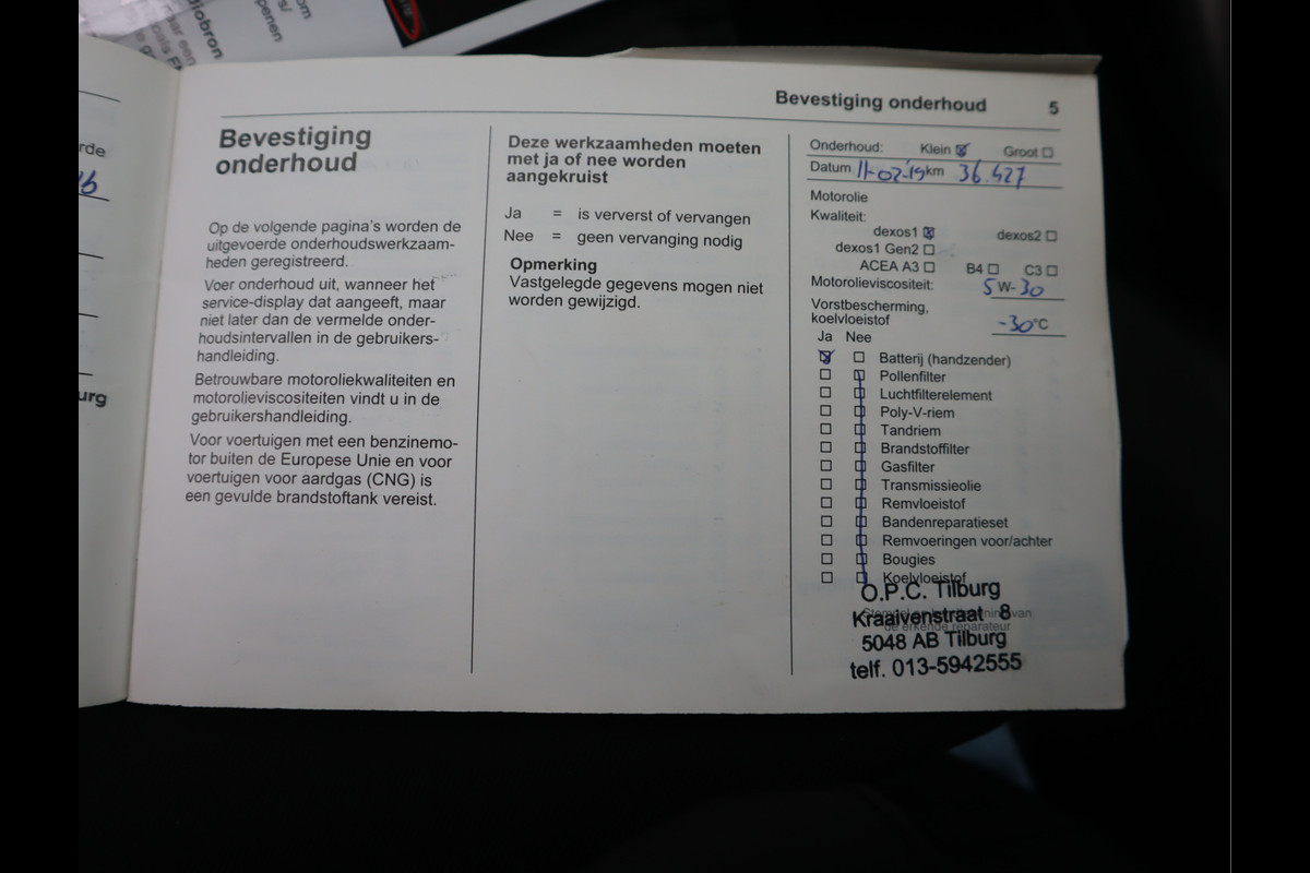 Onderhoudsboekjes: Aanwezig