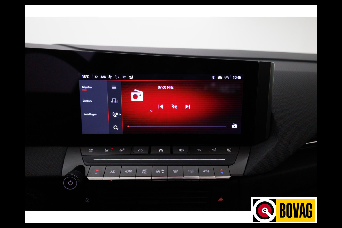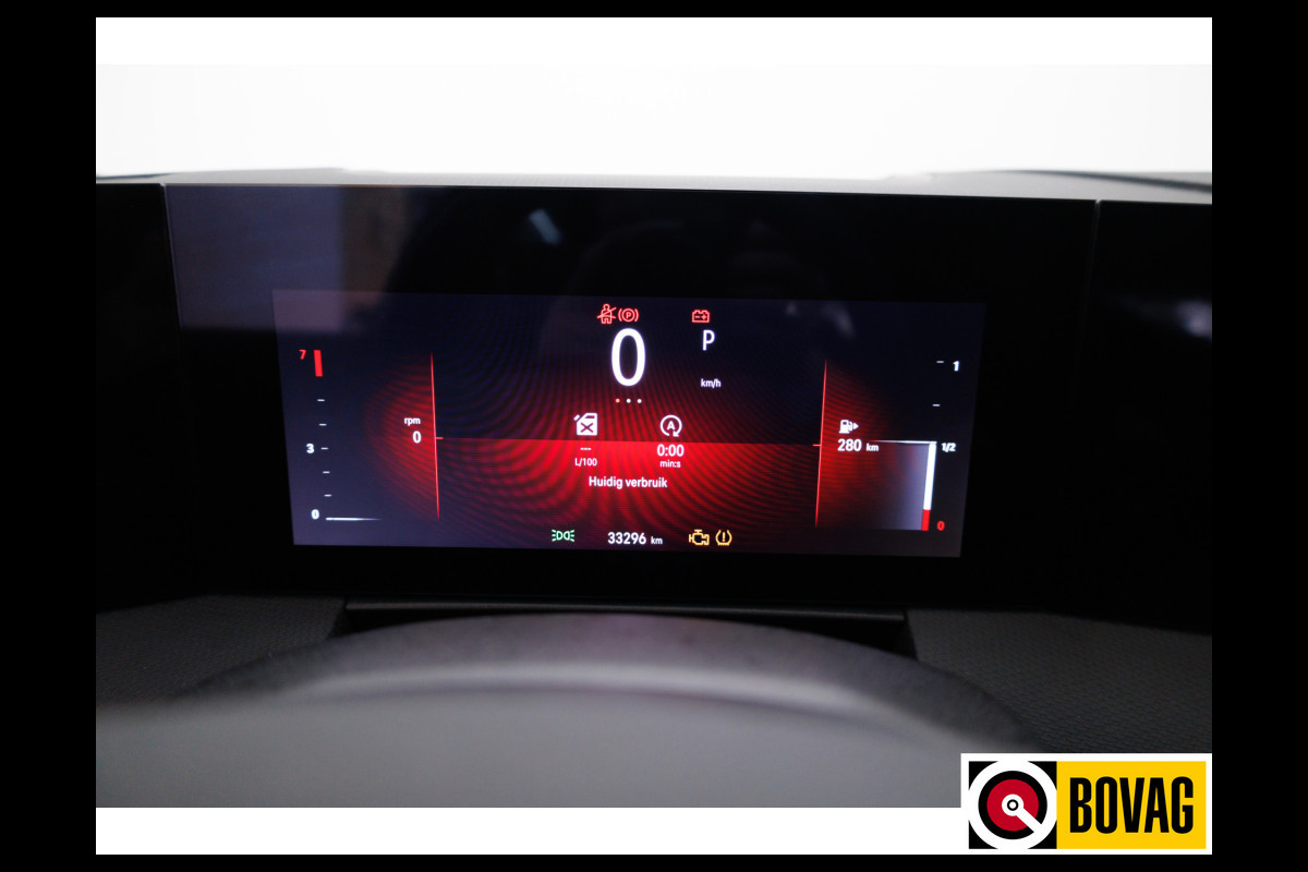 Een cockpit, een informatiecentrum... Wat is de cabine eigenlijk niet? Dankzij het digitale dashboard bent u van alles op de hoogte. Door het combineren van beelden van vier camera's, biedt de 360 graden camera een naadloos en gedetailleerd beeld van de hele omgeving rondom deze auto. Met adaptive cruise control houdt deze auto automatisch afstand tot uw voorligger. Deze Opel Astra Sports Tourer is voorzien van remote services. Via uw smartphone bedient u diverse functies ook op afstand en krijgt u informatie over de status van uw auto. Het infotainmentaanbod is zeer uitgebreid. Ontspannen reizen doet u met behulp van het navigatiesysteem terwijl u muziek afspeelt via het audiosysteem met DAB-radio. Wat u ook in deze auto kunt vinden zijn dashboard met spraakbediening, electronic climate control, draadloos opladen, regensensor, keyless entry en automatisch dimmende binnenspiegel.