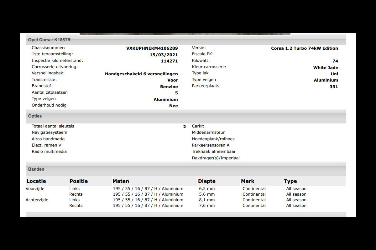 Het kan echter voorkomen dat uit de automatische voertuiginformatie een optie of accessoire naar voren komt die helaas toch niet op de auto aanwezig is.