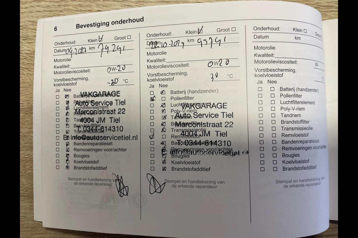Onderhoudsboekjes: Aanwezig