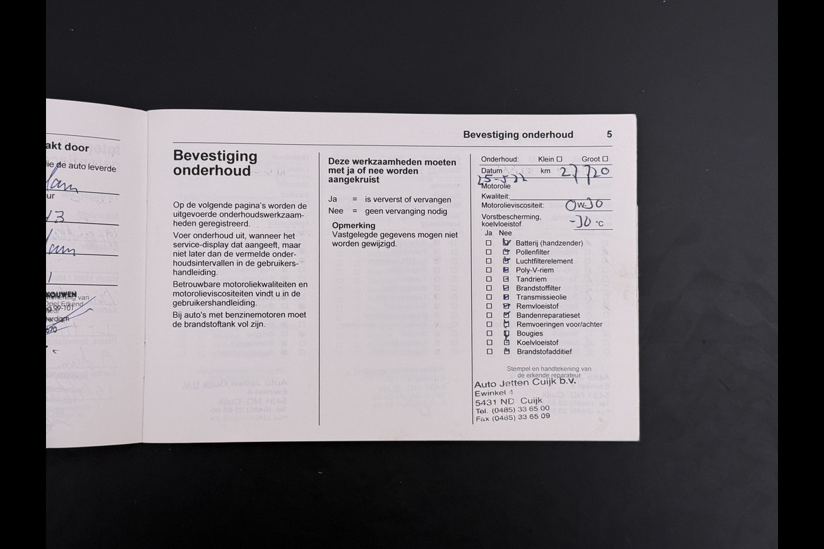 Onderhoudsboekjes: Aanwezig (dealer onderhouden)