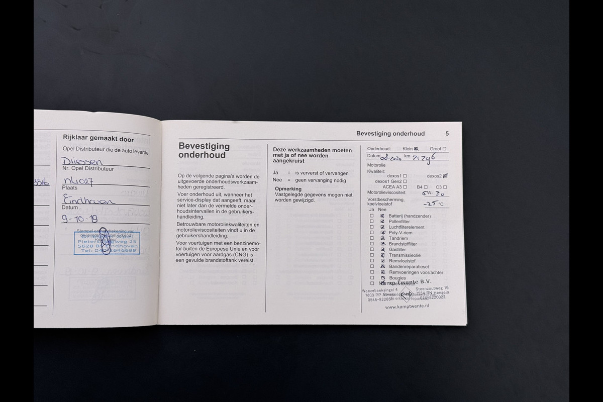 Onderhoudsboekjes: Aanwezig