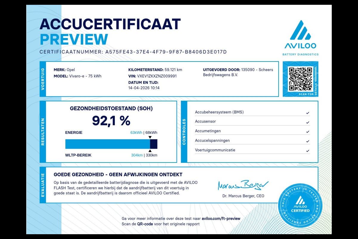 Accu: 68 kWh, Conditie: 92%