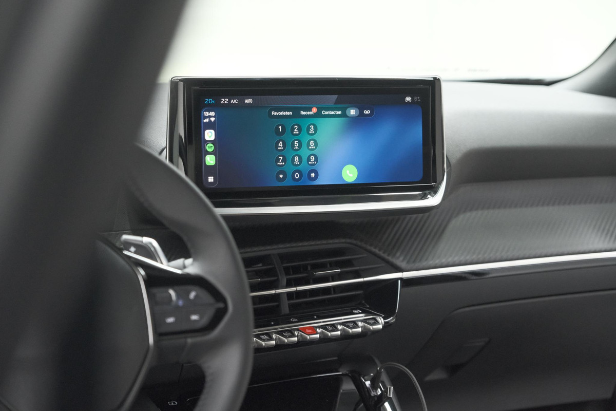 Het digitale dashboard ondersteunt u voortdurend met actuele, bruikbare informatie. Ook achter de auto geen verrassingen bij het inparkeren. Daarvoor zorgt de achteruitrijcamera. Adaptive cruise control is een comfortabele en veilige optie. Het systeem reguleert de snelheid en houdt automatisch afstand tot uw voorligger. De ingebouwde Connected Services vertellen u via de app alles over de status van de auto. Locatie, onderhoudsstatus, brandstofpeil en nog veel meer! Een belangrijke veiligheidsvoorziening is de bediening van het audiosysteem en het navigatiesysteem via knoppen op het stuur. Dab-ontvangst geeft daarbij een kraakheldere ontvangst. De Peugeot is standaard voorzien van: automatische airconditioning, draadloos opladen, regensensor, keyless entry, automatisch dimmende binnenspiegel en lederen stuur.