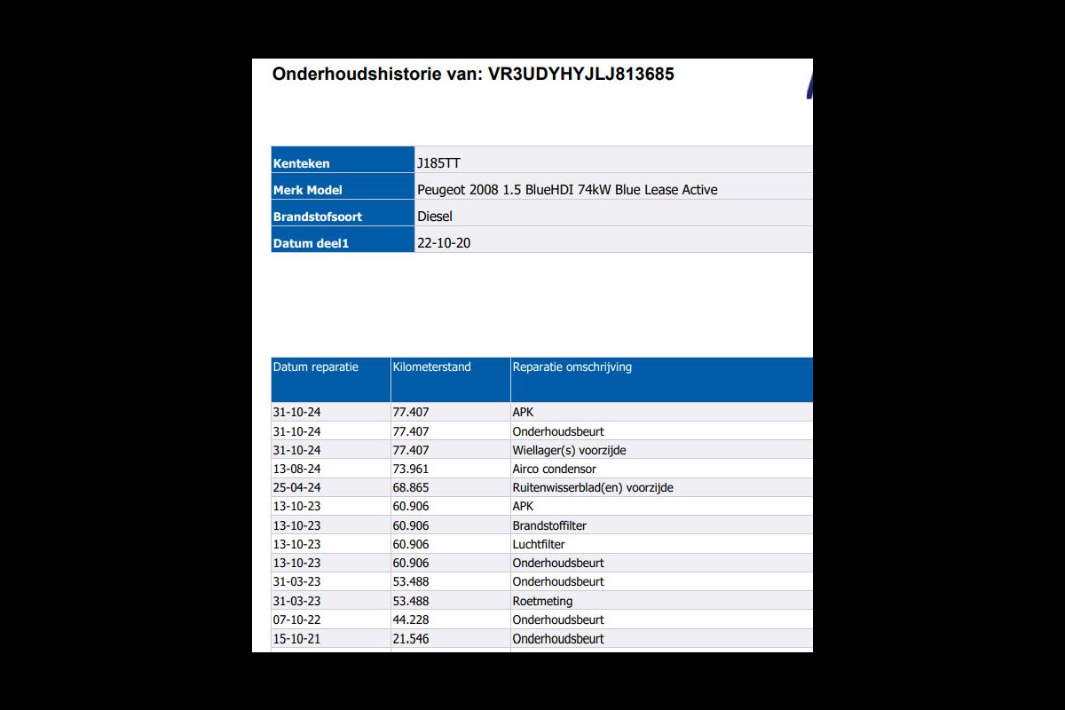 Onderhoudsboekjes: Aanwezig (dealer onderhouden)