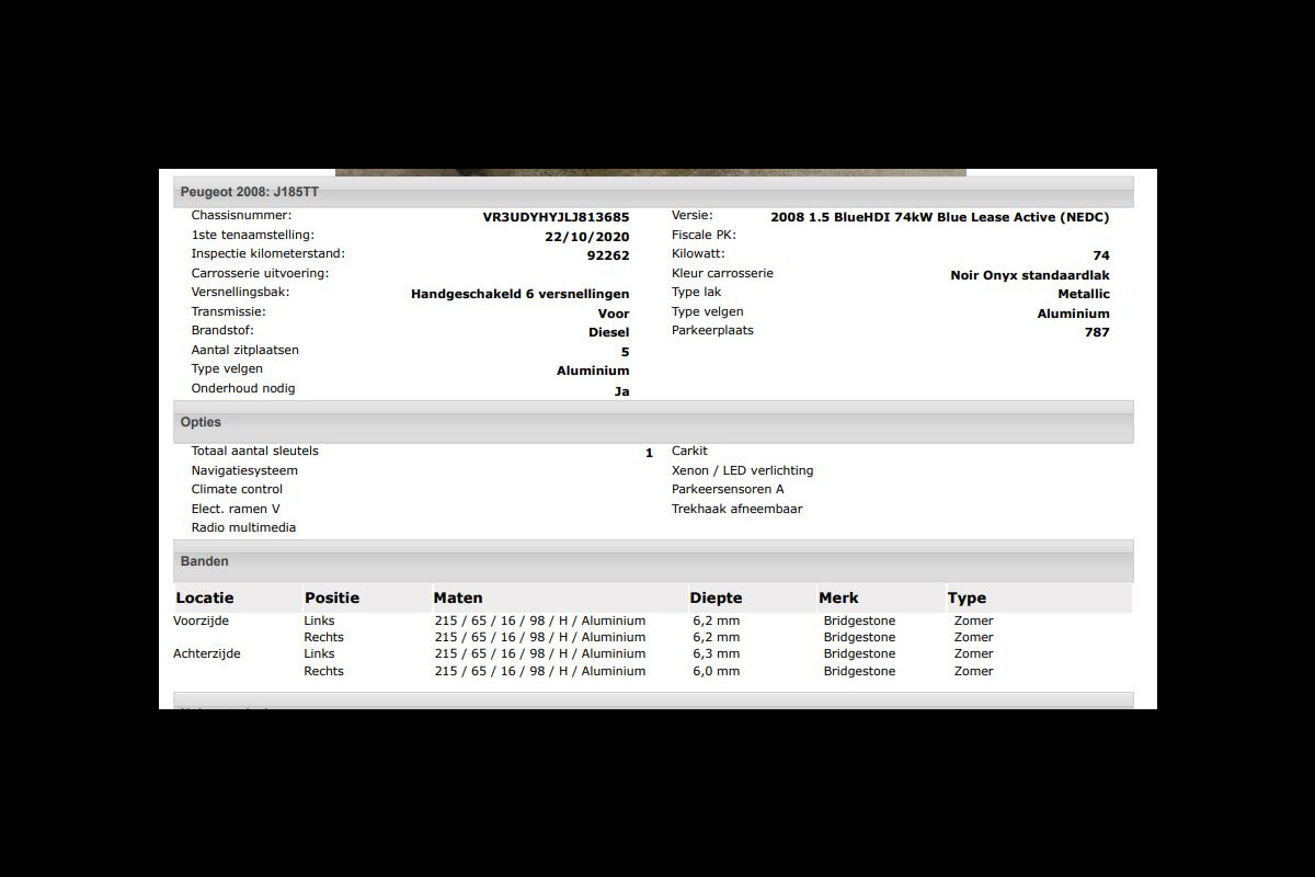 Het kan echter voorkomen dat uit de automatische voertuiginformatie een optie of accessoire naar voren komt die helaas toch niet op de auto aanwezig is.