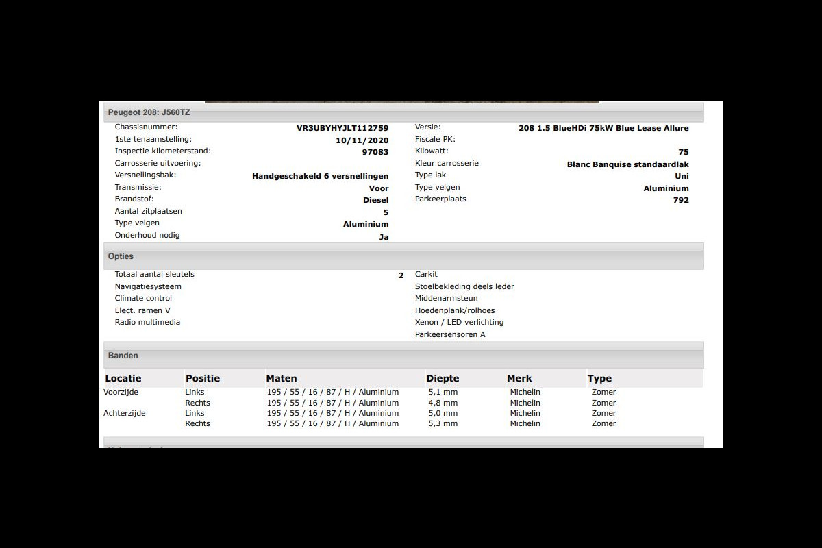 Het kan echter voorkomen dat uit de automatische voertuiginformatie een optie of accessoire naar voren komt die helaas toch niet op de auto aanwezig is.