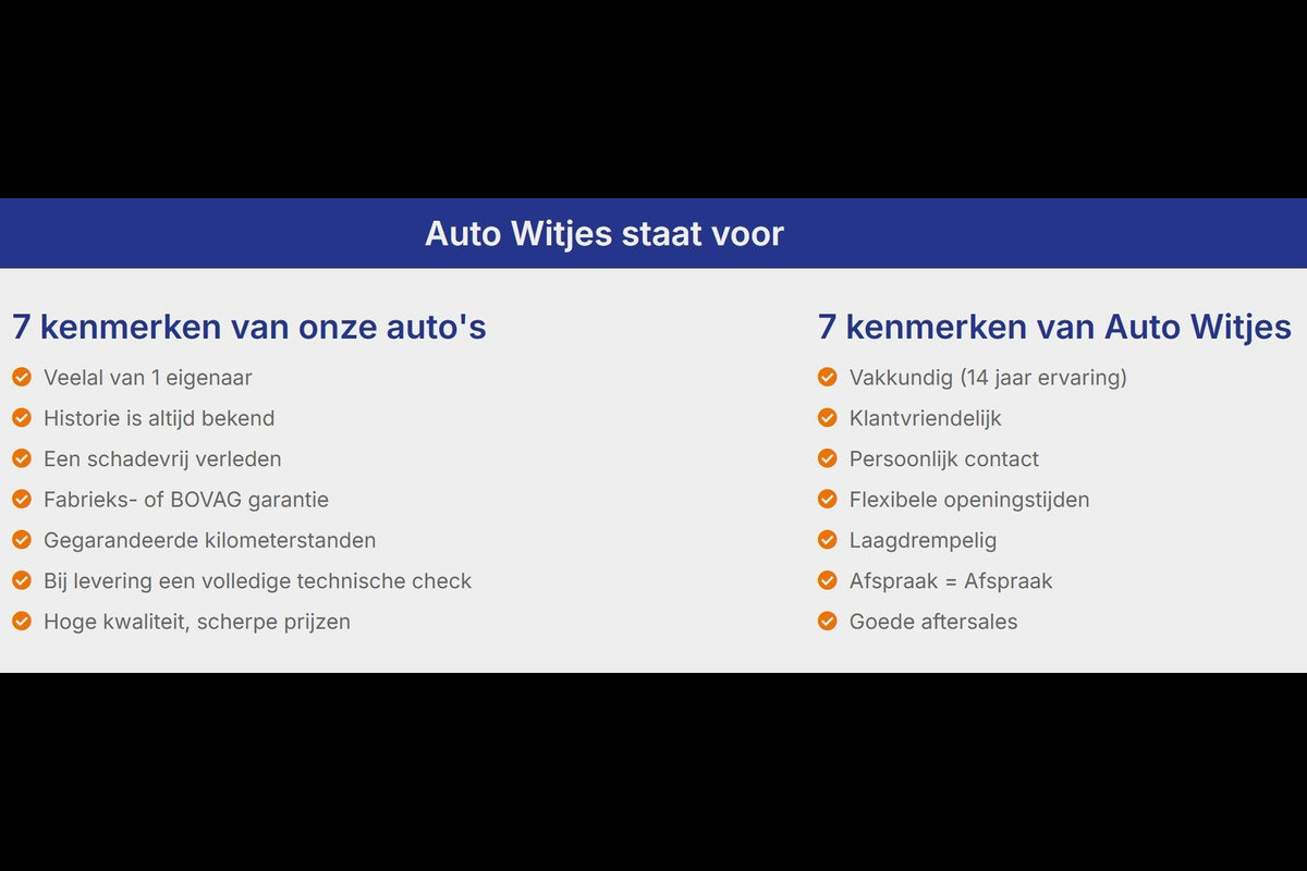 Bij Auto Witjes worden de auto’s aangeboden met heldere ALL-in prijzen volledig rijklaar zonder bijkomende verplichte kosten, wel zo duidelijk. Dat houdt in;