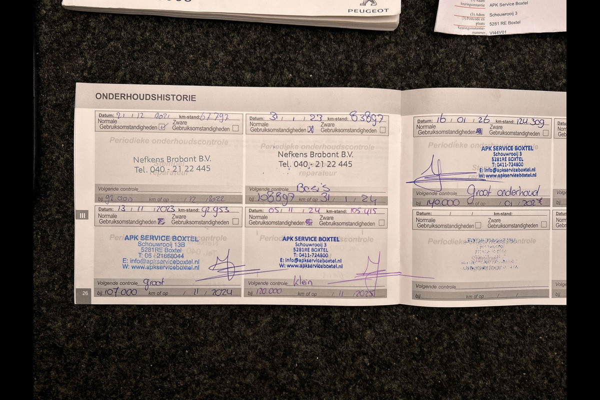 Onderhoudsboekjes: Aanwezig