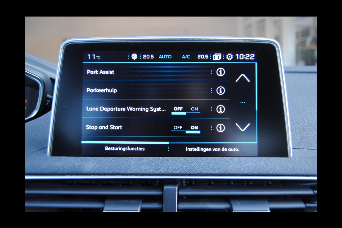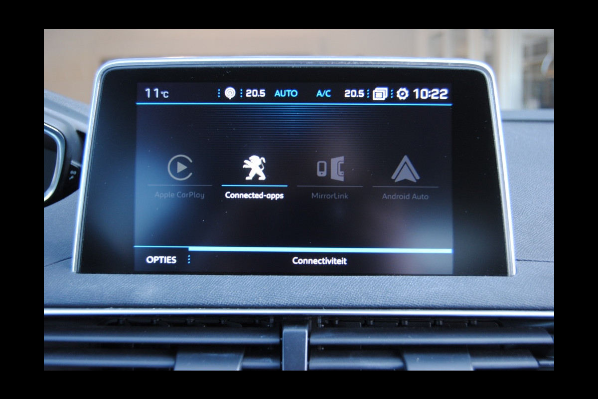 De kracht van de 360 graden camera op deze auto resulteert in optimale zichtbaarheid en veiligheid. Navigatie, onderhoudsstatus, vergrendeling, audio... de mogelijkheden van remote services zijn haast oneindig. Ook deze auto laat zich bedienen en analyseren via uw smartphone! U kunt tijdens de rit uw ogen steeds op de weg houden, want het audiosysteem (met DAB!) en het navigatiesysteem kunt u bedienen vanaf het stuur of met spraak. De auto is ook uitgevoerd met electronic climate control. Hoeveel ruimte u nog heeft bij het insteken? De parkeersensoren laten het weten! Da's gemakkelijk! Deze Peugeot is voorzien van regensensor, cruise control, keyless entry, automatisch dimmende spiegels en lederen stuur.